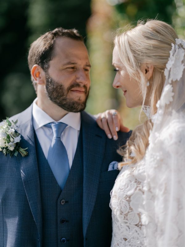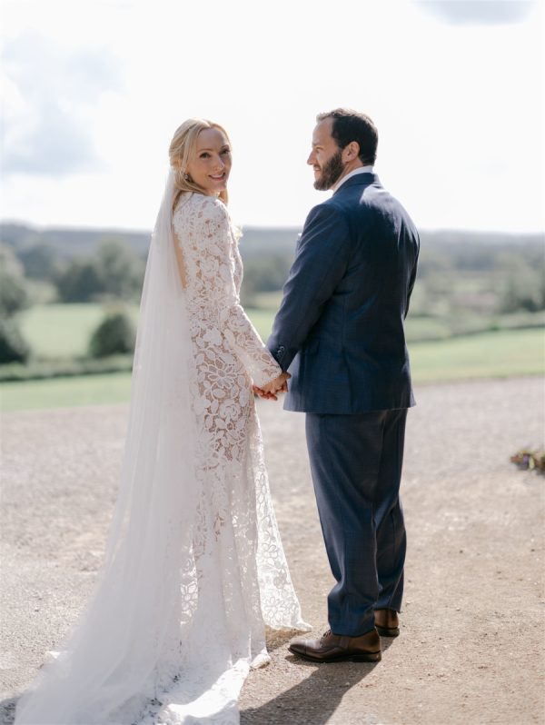 Event Design: Village Green Events | Floral Design: Meadows and Mulberry | Wedding Dress: Costarellos | Cake: Cake by CD | Hair and Makeup: Carly Lyn Wise | Band: Waking Vegas | Groom’s Attire: Jonathan Behr | Bridal Shop: LOHO Bride | Custom Veil Design: Harriett Falvey | Engagement and Wedding Rings: Sofia Kaman | Evening Dresses: Zimmermann | Location: Wildhive Callow Hall | Photography/Videography: Stories From Eros