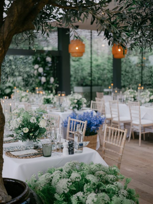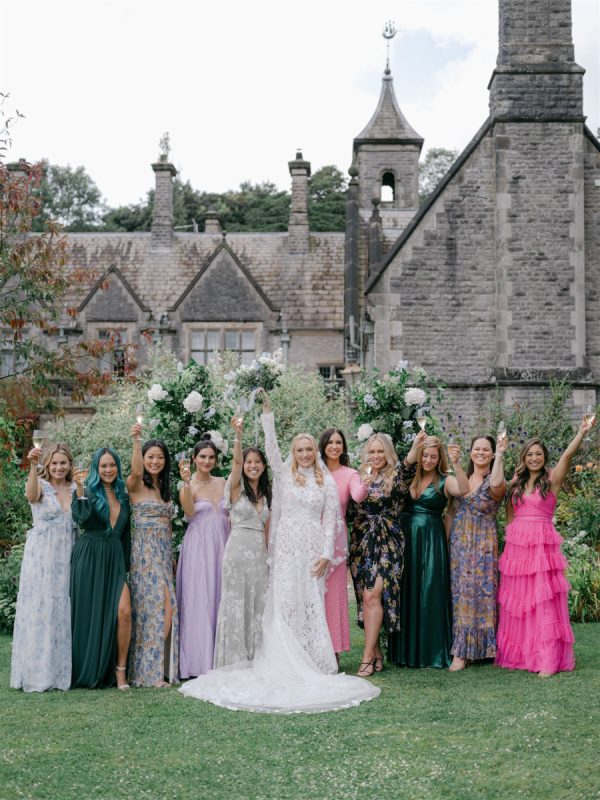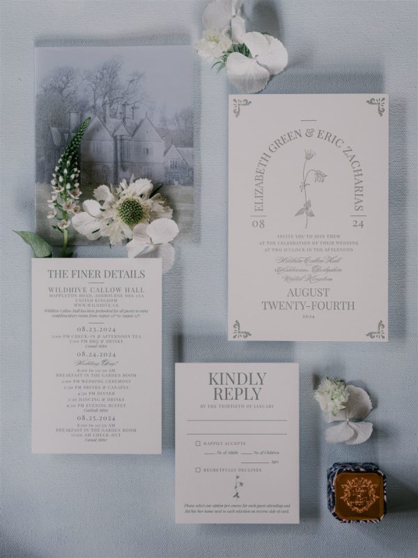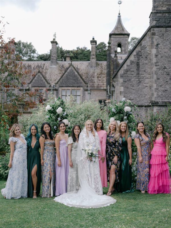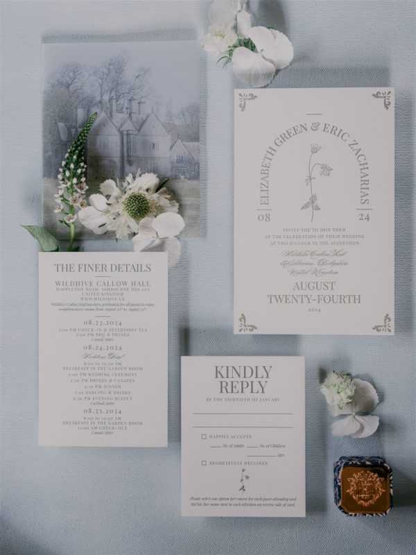 The minute we got engaged, we knew we wanted to get married in the English countryside. We wanted the wedding vibe to feel light and airy, delicate, and ethereal. The wedding theme was English Garden, but there were also elements of ancient woodlands, wildflowers, meadows, natural beauty, and preservation. The location, Derbyshire, is where Jane Austen’s Pride and Prejudice took place. After a few months of searching for the perfect English countryside venue, we came across Wildhive Callow Hall, a beautifully restored Victorian country house nestled in ancient woodland. Not only were the views of the rolling hills from the glass windows of Wildhive breathtaking, but the property also had treehouses and woodland hives that our more adventurous guests could stay in, and we were sold. We were so excited about finding the perfect location.