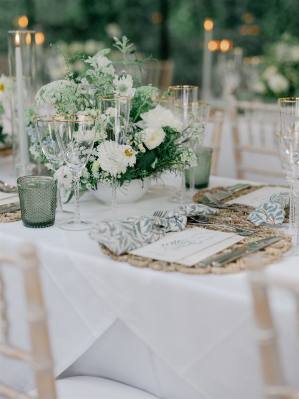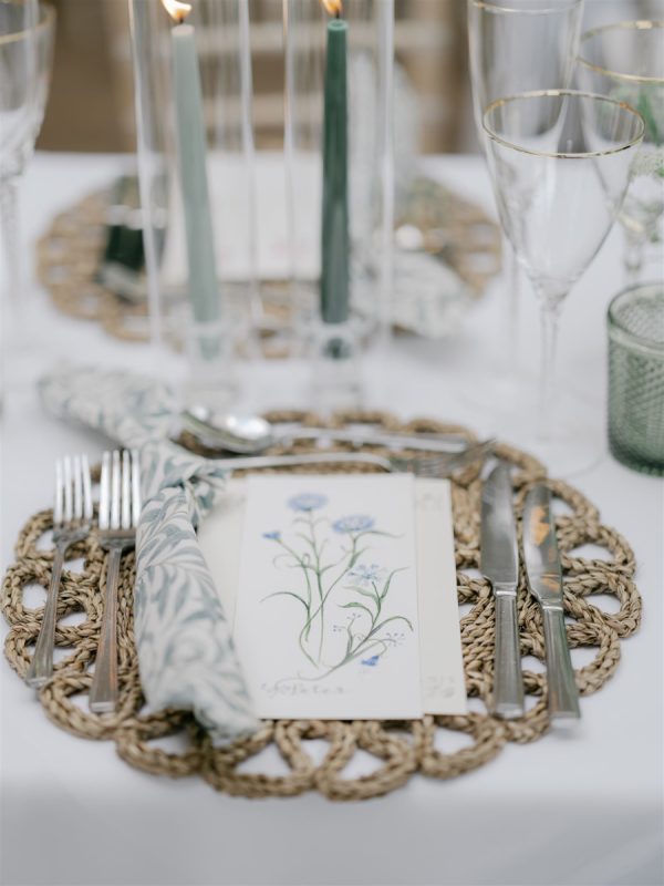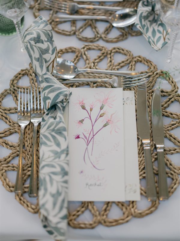 My mother is a botanical artist, and she hand-painted more than 50 place cards for each guest. This was so special to both Eric and me and made our place a one-of-a-kind bespoke piece of art that guests could take home and frame if they chose to.