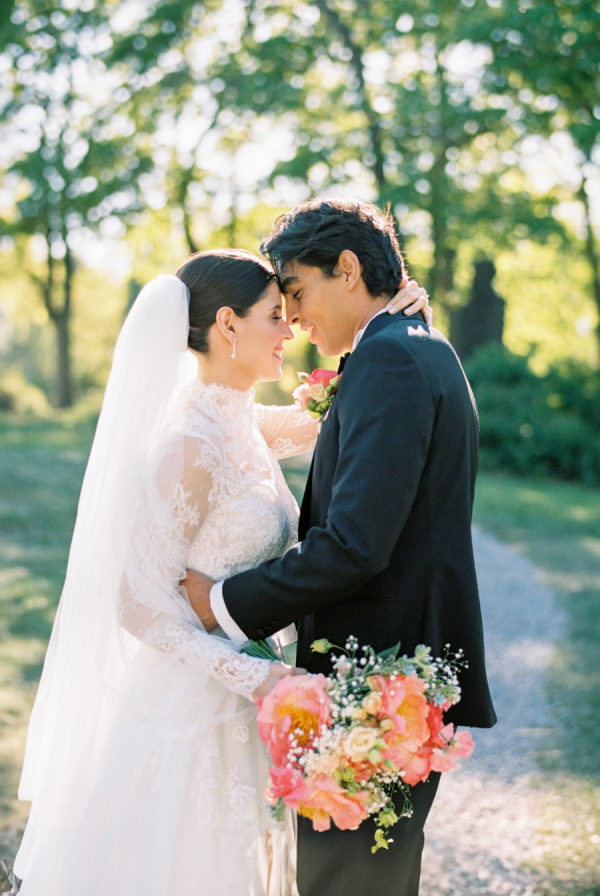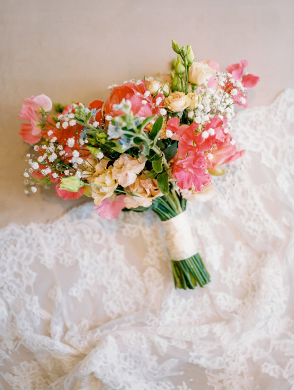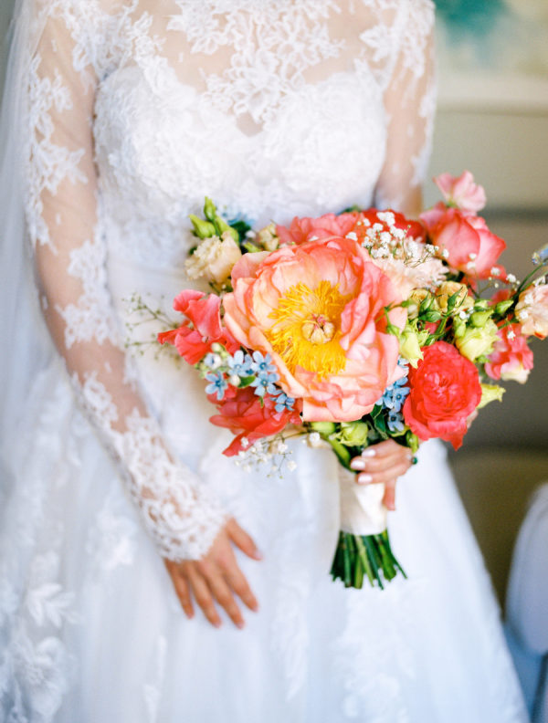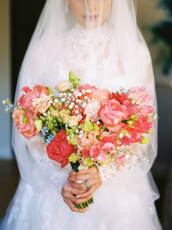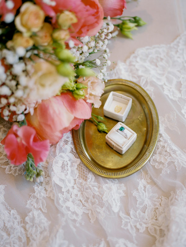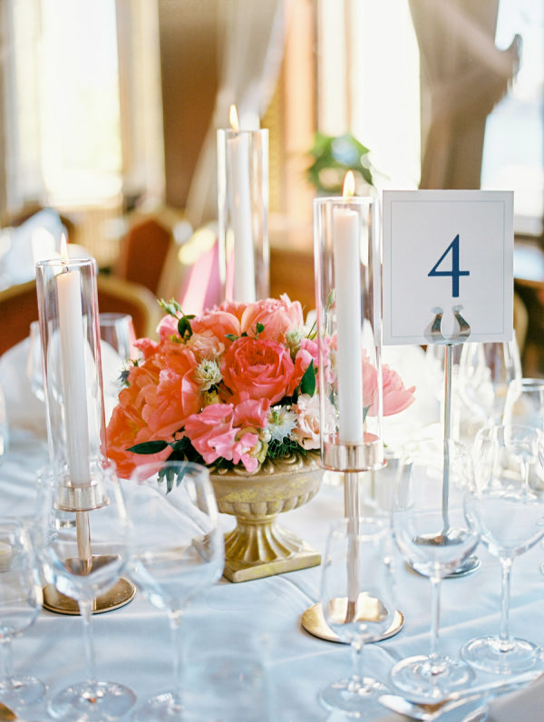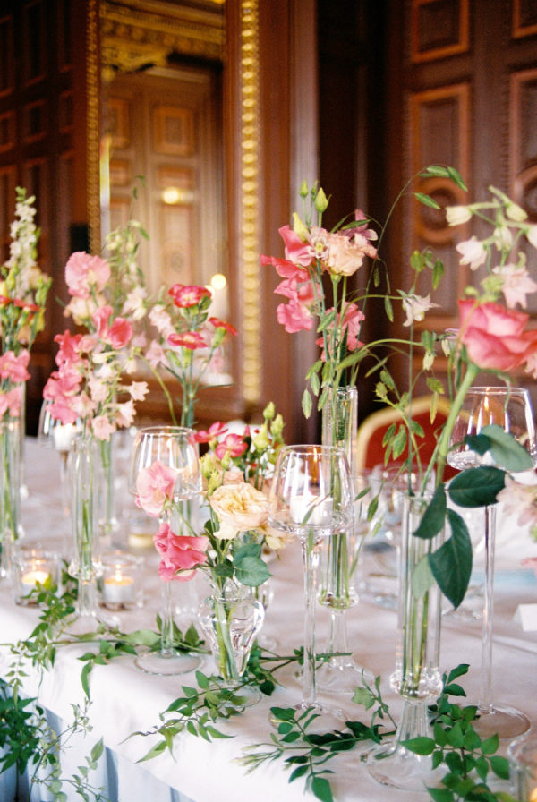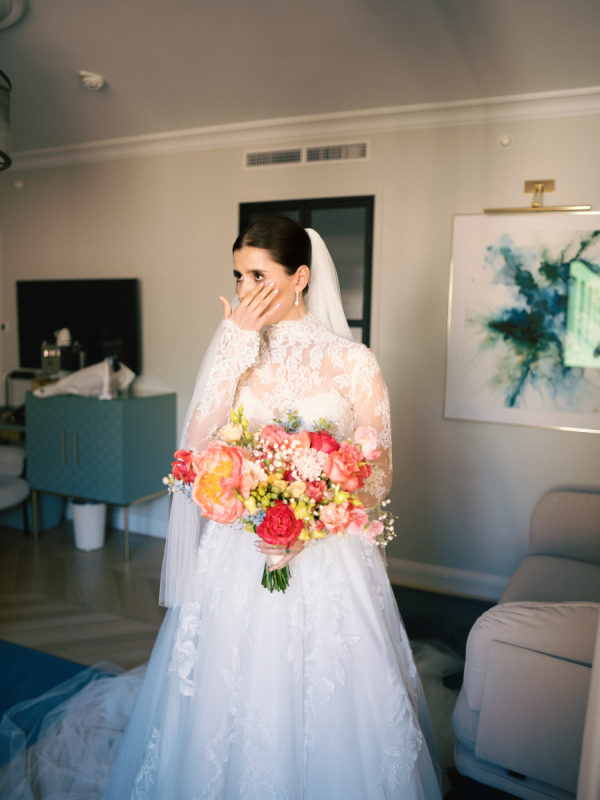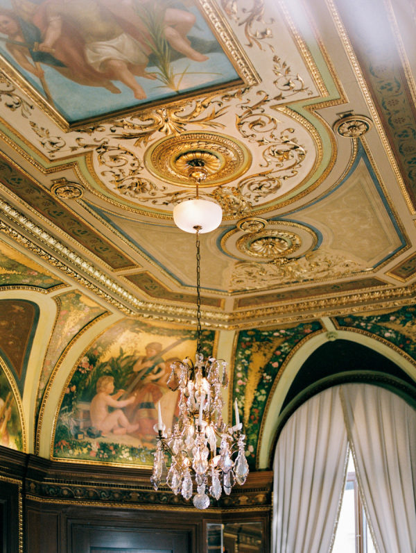 [field title=”Florals & Decor”]The florals were designed with Anna’s love of red at the heart. Scarlet, coral, and blush blooms were paired with gold vessels and tall, glowing candles. Against the ornate wood-paneled walls and frescoed ceilings of the Grand Hôtel, the flowers became both vibrant and regal, striking the perfect balance between opulence and intimacy.[/field]