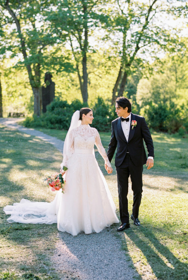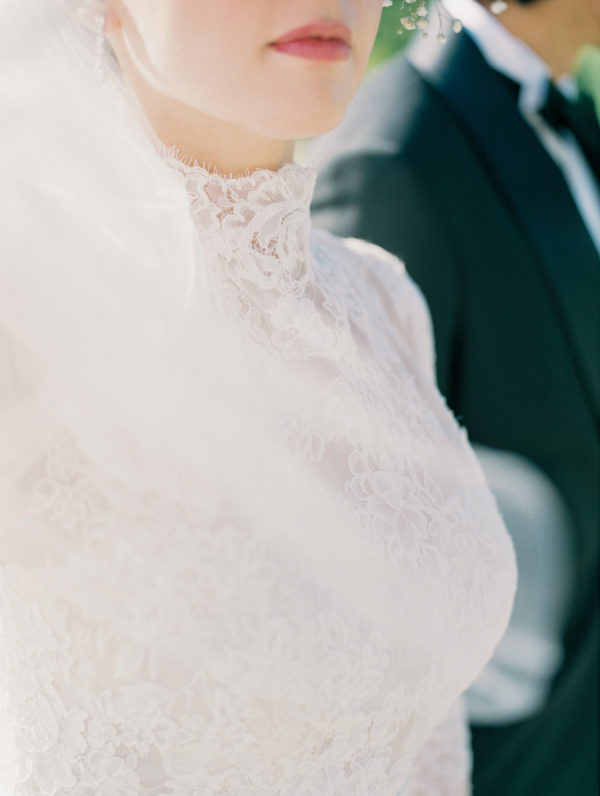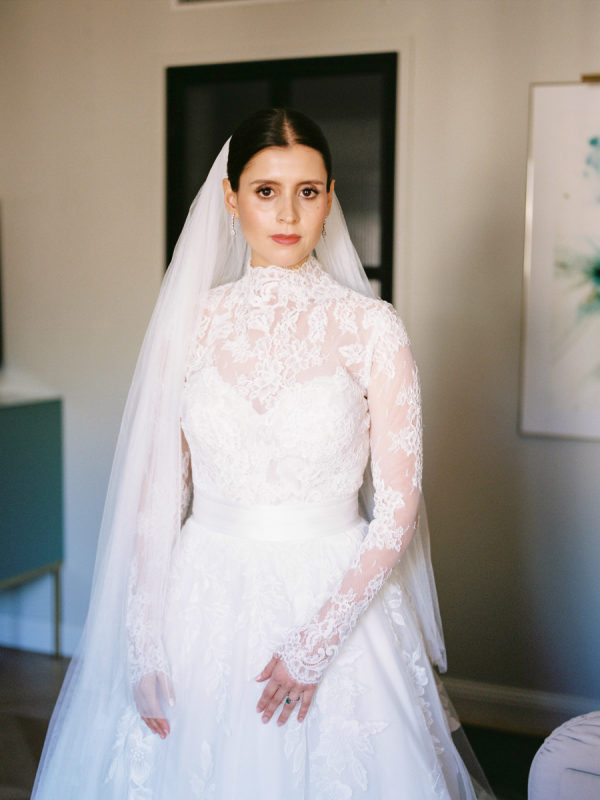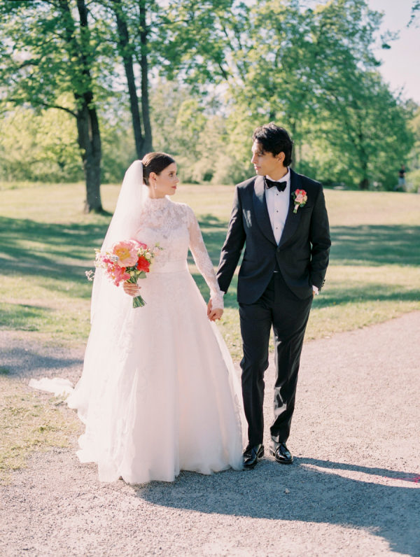 Anna chose a gown that paired refinement with a sense of ease. The high lace neckline and long sleeves gave her a graceful silhouette that felt equally at home in the grandeur of a church and in the city streets of Stockholm. Paired with hair and makeup, Anna’s look was quietly striking, the kind of style that will feel just as iconic decades from now.