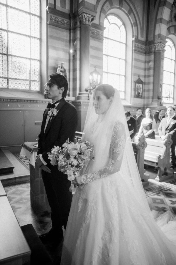 Anna and Carlos arrived at the Catholic church in a stunning 1961 Rolls-Royce Phantom V James Young. It wasn’t just a mode of transportation; it truly set the tone for the day. Their elegant entrance through the city streets turned heads and made them feel connected to Stockholm’s rich history and lively, ever-changing rhythm.