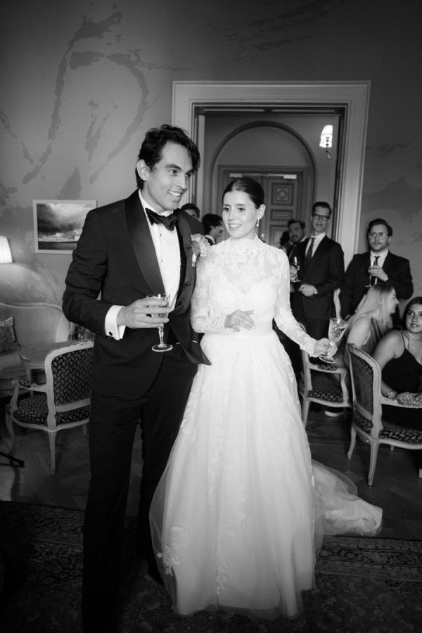 Dinner was central to their vision, and the Grand Hôtel delivered. Guests enjoyed a carefully crafted multi-course menu that highlighted the best of Swedish culinary tradition, paired with international flavors. Cocktails opened the evening, followed by dishes that encouraged guests to linger at the table, exactly the feeling Anna and Carlos hoped for when they dreamed of a wedding that felt like a dinner party with their favorite people.
