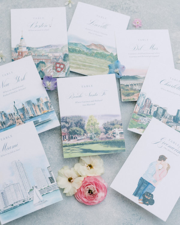Instead of traditional table numbers, Courtney and Richard infused their reception with personal touches by naming each table after meaningful places in their journey together. From the beach where they got engaged to the city where they attended college, each table told a story of love, adventure, and cherished memories. Guests enjoyed learning about these special locations, making the evening feel even more intimate and reflective of the couple’s unique love story. It was a beautiful way to celebrate not just their wedding day but the incredible journey that brought them there.