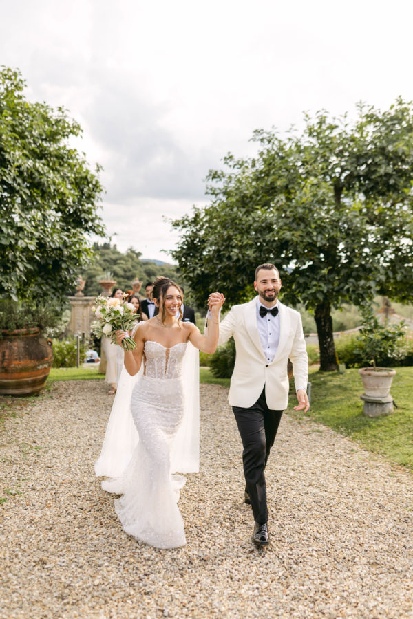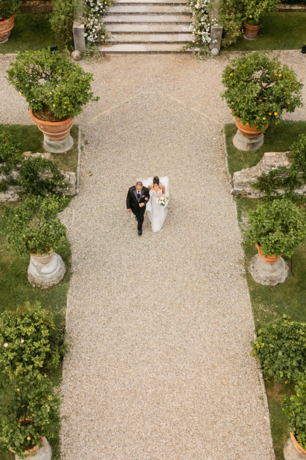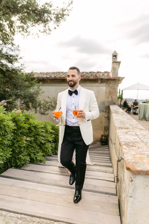 Emilia and Paolo’s wedding was filled with Tuscan tradition. After the ceremony, guests enjoyed a traditional apéritif overlooking Florence with food stations, passed delicacies, and traditional cocktails from the region. Following Apertif, guests enjoyed a black tie sit-down dinner that included 4 courses with local ingredients.