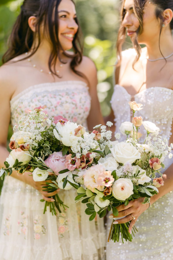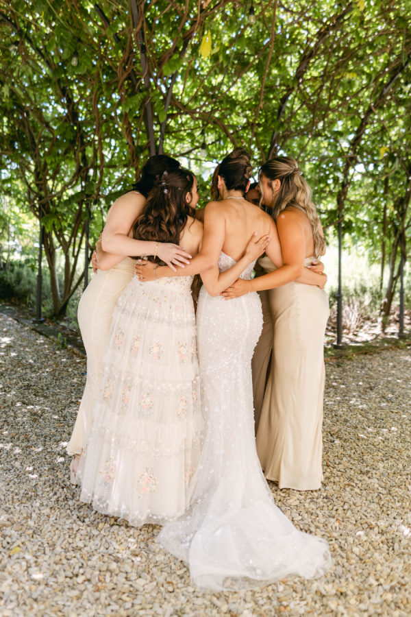 When it came to bridesmaids, the most important thing for me was for them to look and feel their best. I gave them total freedom to choose whatever dress they wanted at whatever price point they felt comfortable with. The only ask was for the colour range to be in the off white, creams, golds, and beige tones. All girls ended up getting their dresses from different places, and I couldn’t have been happier with what dresses they chose. Although they were all SO different, all of them together looked amazing.