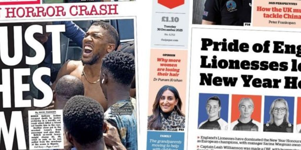 Newspaper headlines: Anthony Joshua in ‘horror crash’