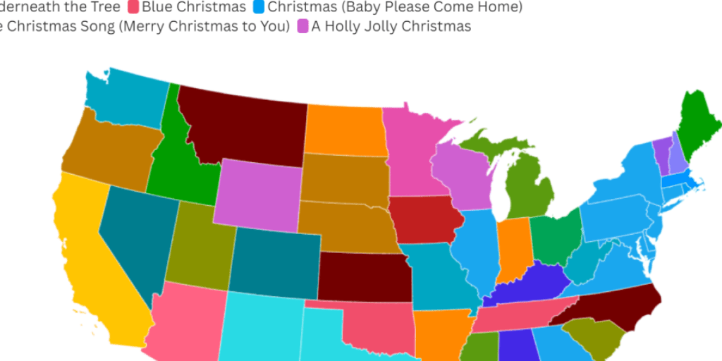 Map shows favorite Christmas songs in every state