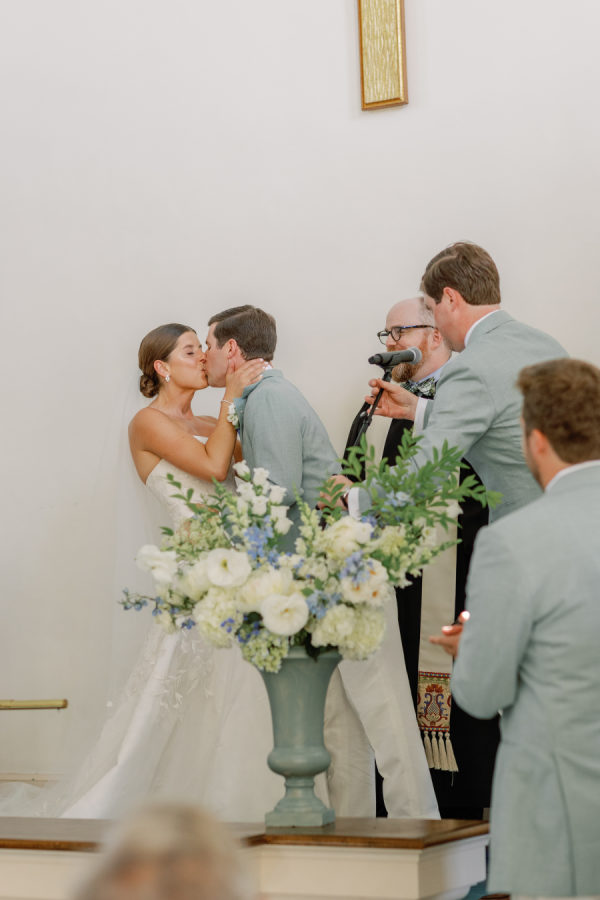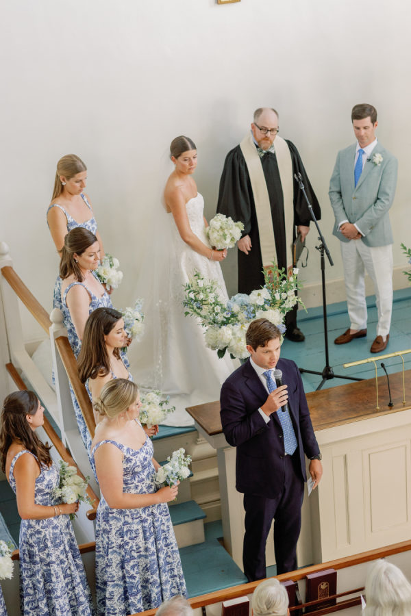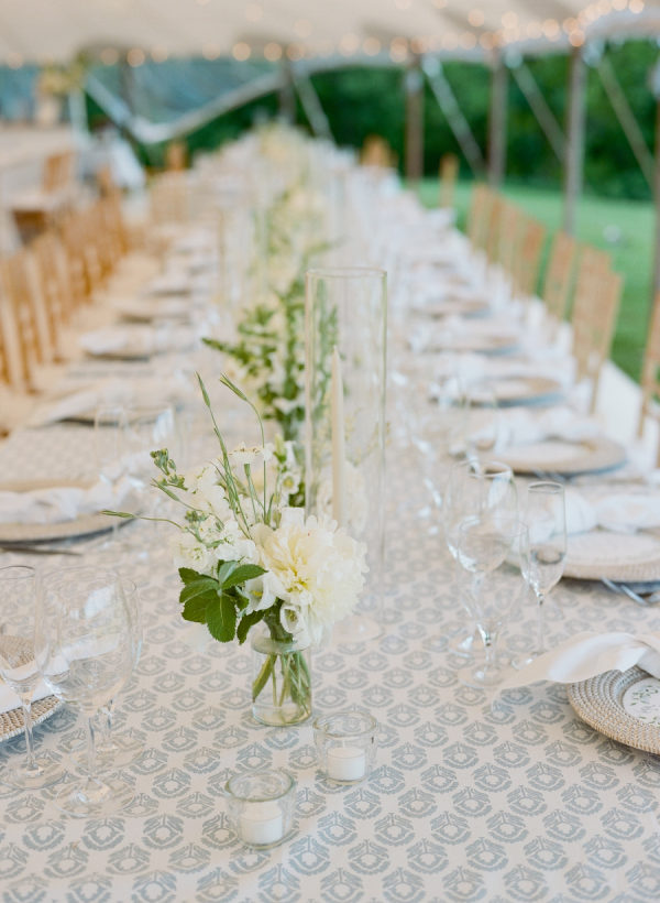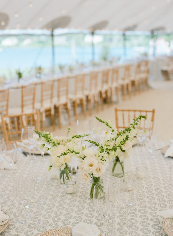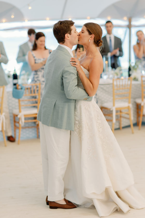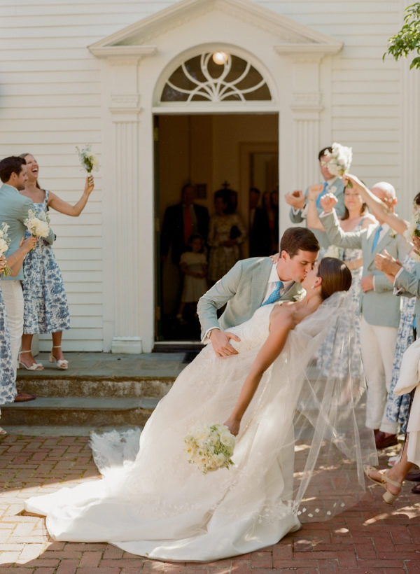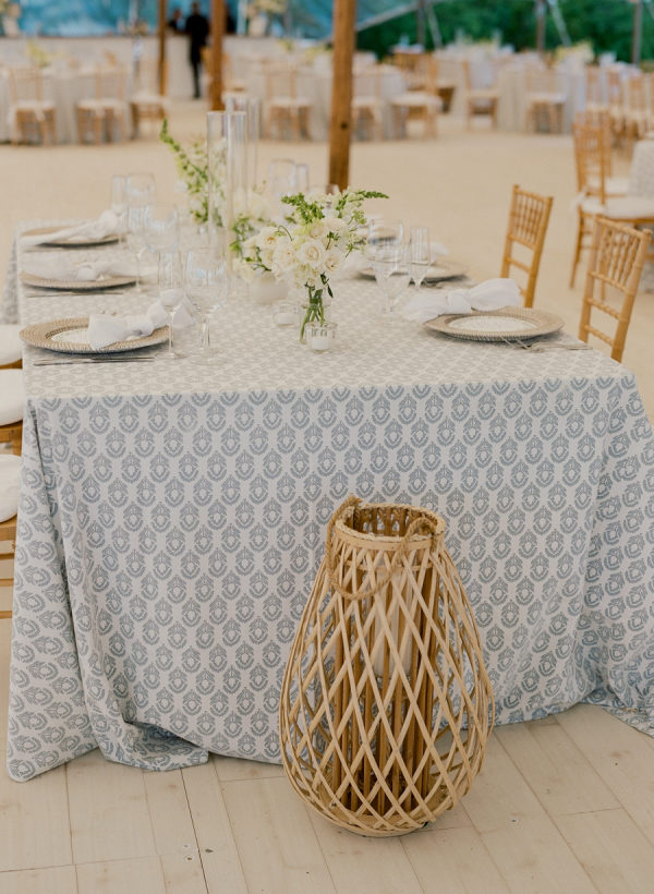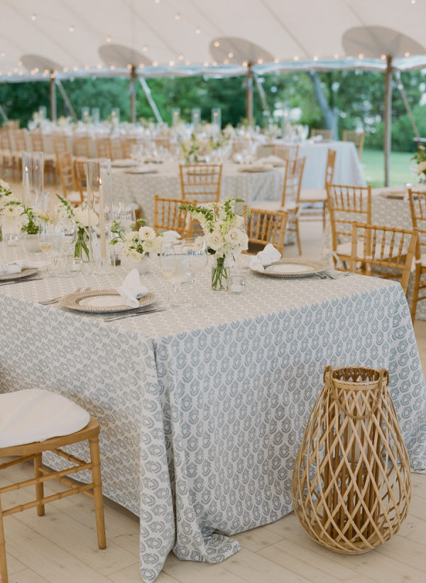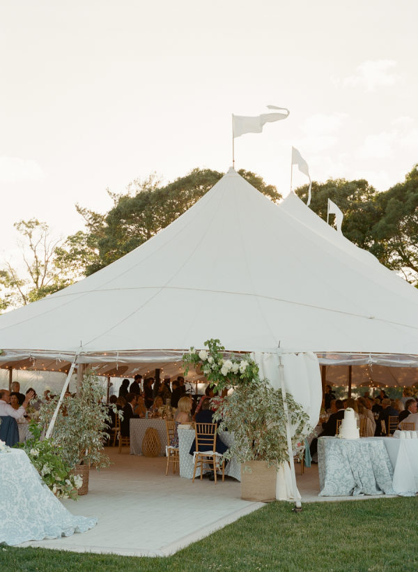 Kristin and Mac designed their wedding to capture the essence of a classic Vineyard celebration, weaving in colors of blue, white, green, and rattan accents to reflect the natural beauty of the island.