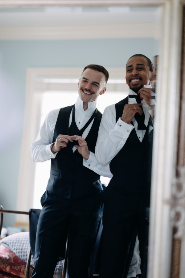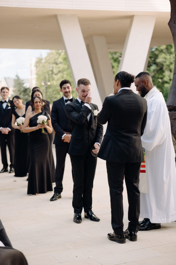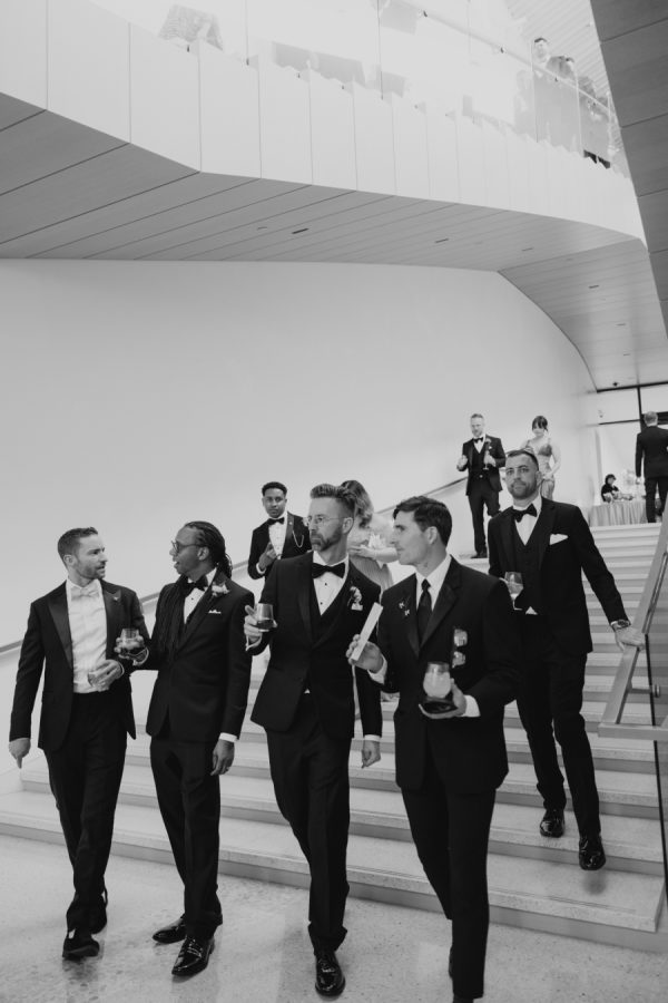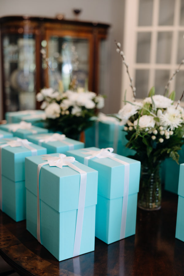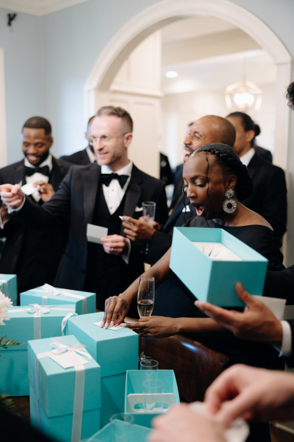 The grooms gifted their wedding party Tiffany’s glassware as a thank you for their love & support on their special day.