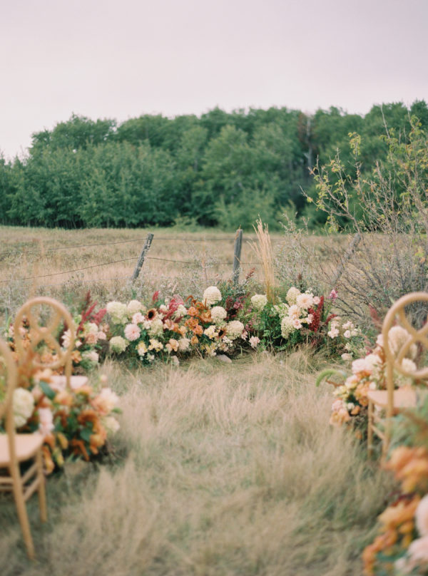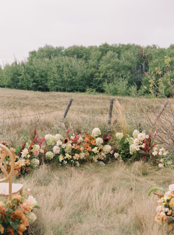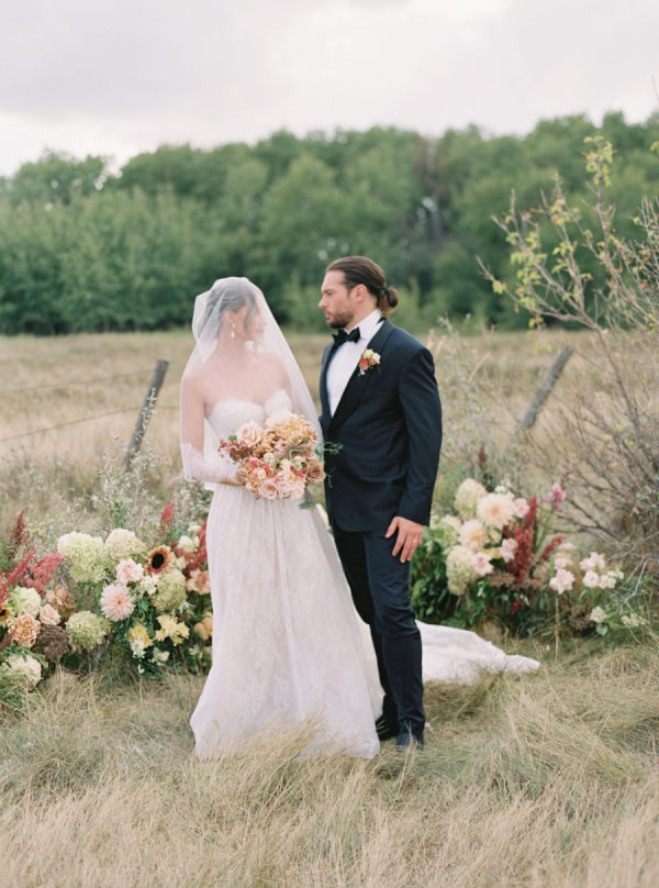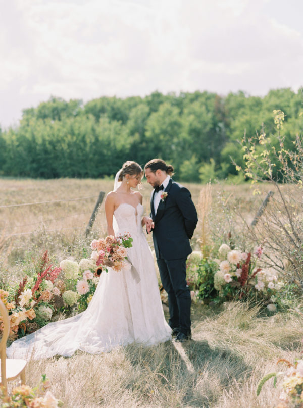 [field title=”Florals & Decor”]Floral design by Twig and Bloom Floral reflected the wild beauty of the prairies, using locally sourced blooms in warm, sun-washed tones. Table design by Raven Alexandra Weddings incorporated organic textures, handpicked details, and rentals from Special Event Rentals Regina, blending rustic authenticity with refined artistry.[/field]