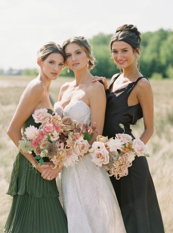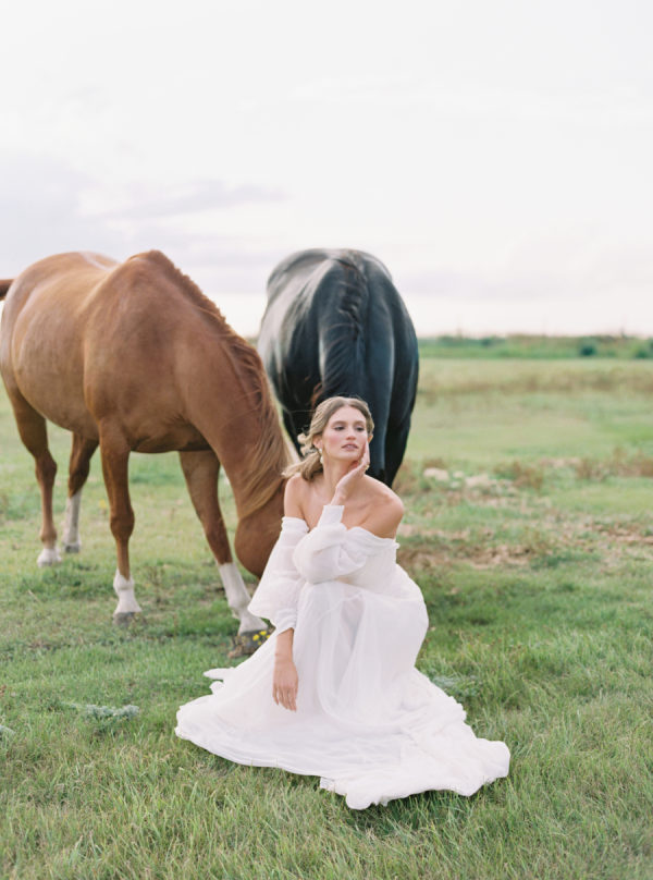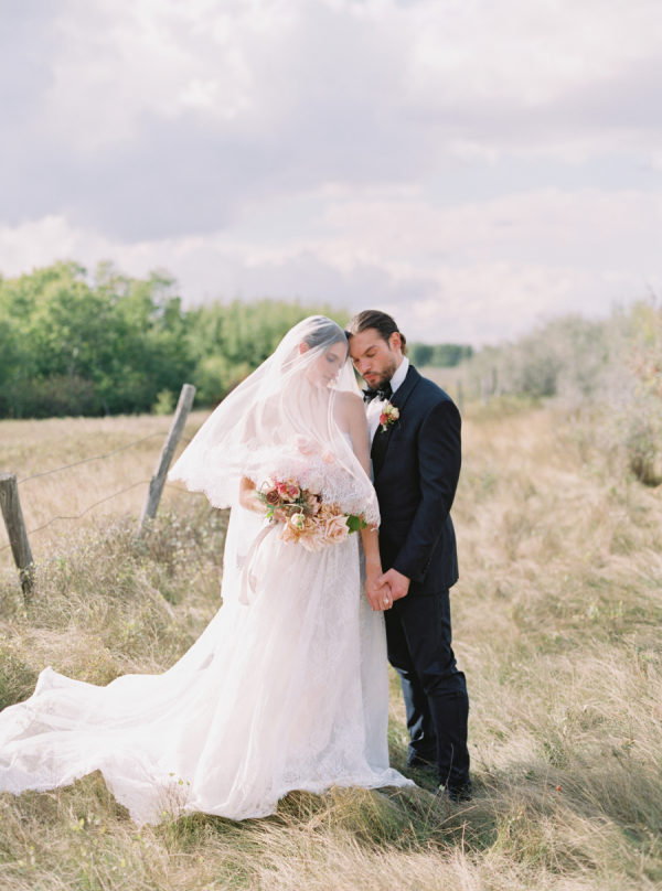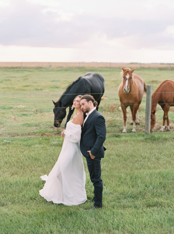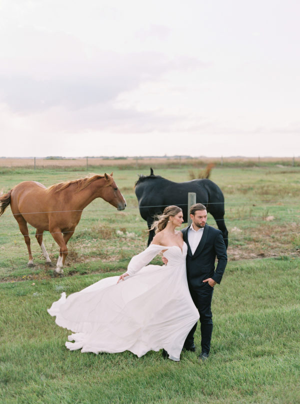An homage to the quiet beauty of the Canadian prairies. This editorial was created to celebrate the understated elegance of a landscape too often overlooked. The prairies are known for their vastness, their simplicity, and their strength, and we intended to honor that beauty in its truest form. Set among open pastures and wild grasses, Ensemble Prairies tells the story of love rooted in place. Horses grazed quietly in the distance, golden light poured across the fields, and every detail was chosen to feel both grounded and refined. We drew inspiration directly from the land itself. Local florals reflected the tones of late-summer prairie blooms: soft ochres, faded blush, and earthy greens. A prairie-inspired menu echoed the harvest season, with notes of warmth and abundance. The cake, adorned in delicate blossoms, mirrored the organic movement of wildflowers swaying in the breeze. Our bride and groom, both from the prairies, embody the authenticity and humility of those who call this region home. They are as beautiful in spirit as they are in form—a reflection of what this landscape cultivates: grace, resilience, and quiet strength. Every vendor was chosen with the same intention. Local artists, florists, planners, and creatives came together to build something that felt deeply connected to our roots. The result is a visual love letter to this place—a celebration of artistry born from community, and of beauty found in simplicity. Ensemble Prairies is a reminder that you don’t have to look far to find extraordinary beauty. Sometimes, it’s right where you are; growing wild in the fields, carried on the wind, and waiting to be seen.