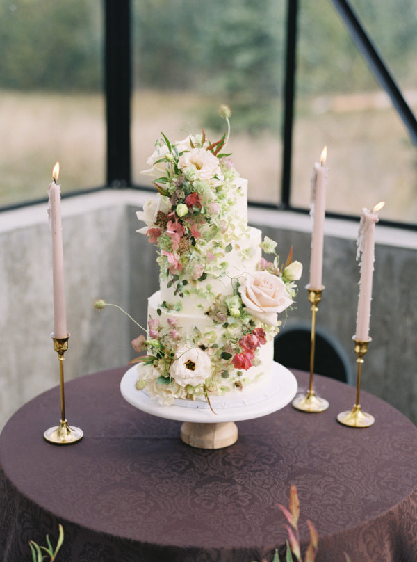 The floral-adorned cake by Queen City Cakes is styled with delicate local blooms to mirror the natural, windswept beauty of the landscape. It stood as a centerpiece of artistry and a connection between nature and design.