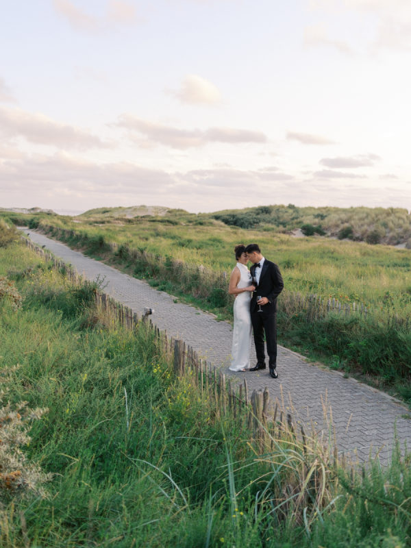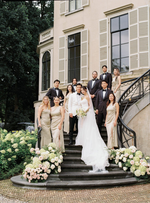 Vivian & Long’s wedding took place at two beautiful locations: Parc Broekhuizen, one of the most luxurious estates in the Netherlands, and the grand hotel Huis ter Duin for the grand banquet reception. Love and nature intertwined to create a sophisticated and elegant setting for the ceremony in Parc Broekhuizen. The panoramic view of the serene lake became the focal point of their vows, surrounded by a palette of green, soft pink, and white that blended seamlessly with the abundance of green hydrangeas of the property. As the evening unfolded, they transitioned to Hotel Huis ter Duin, welcoming extended loved ones for a lively banquet and fantastic party filled with heartfelt moments and unforgettable revelry—proof that intimacy and exuberance can share the spotlight flawlessly.