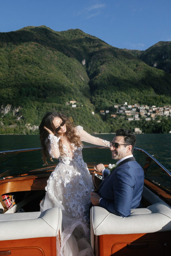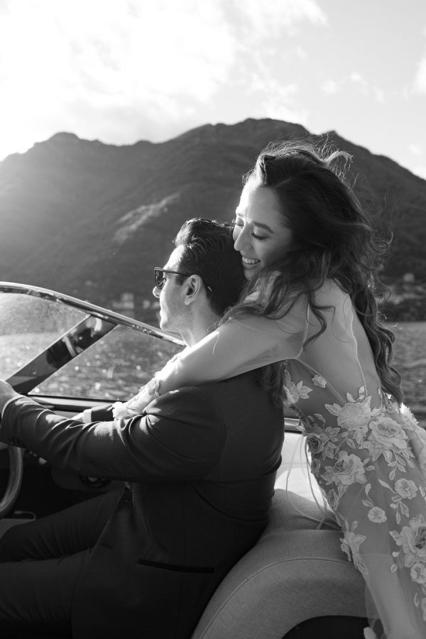 On July 27, 2023, Greg proposed to Lena at Banff National Park in Alberta, Canada. The natural beauty of Banff’s turquoise blue waters, glistening lakes, and mountains made it an even more majestic proposal. Greg and Lena wandered off into the woods with no humans in sight—except for those in canoes from a long distance away. Lena was doing the usual, at the edge of the lake, mesmerized and admiring the scenery, and capturing it through photography. Greg called Lena from above, “Lena, come here!” She ran atop the squishy moss, into the woods, and Greg hugged her tight. She felt a sense of security and comfort. Greg looked into her eyes, confessed his love for her, gave the sweetest, most sincere, heartfelt speech, got down on one knee, and asked Lena to be his forever. Greg and Lena met on the lakes of Michigan, got engaged on a lake in Banff, Alberta, and are now married on Lake Como, Italy. It’s no wonder that their relationship brings tranquility, peace, and comfort, as the lake signifies their love.