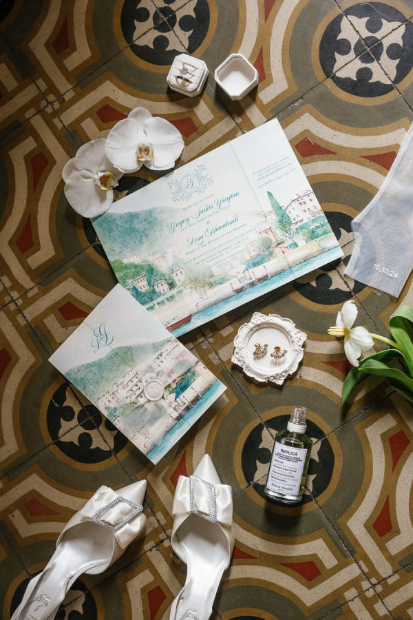 Photography: Vivid Symphony | Event Planning: Brilliant wedding Sicily: Event design and styling | Floral Design: THE GARDEN OF LOVE | Invitations: Lynda Loves | Reception Venue: Villa Regina Teodolinda | Catering: Sunlake Catering | music: Blunotte Events | video: Francesco Giorgianni