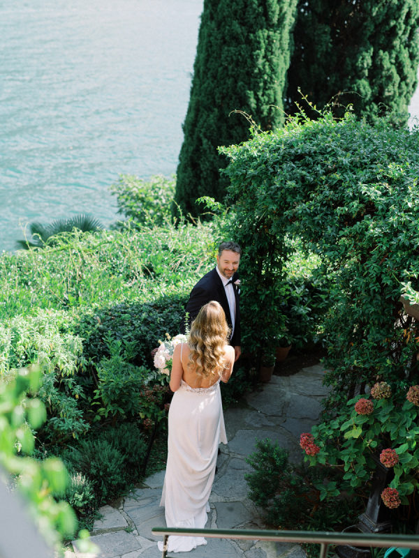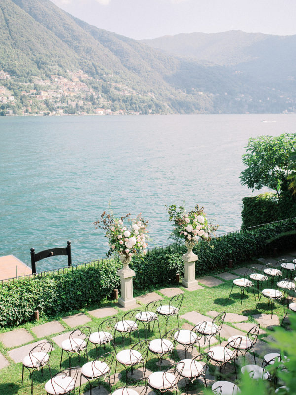 Lake Como was a dream backdrop to exchange vows in a special place that has become Steve and Ashley’s second home. Their design philosophy was simple: to enhance the natural beauty without overshadowing it, creating an atmosphere of timeless romance. They chose a color palette that harmonized with the villa’s blush tones, incorporating the lush greens and neutrals to blend seamlessly. With a long list of venues to tour, Relais Villa Vittoria was the first and last stop. The couple knew it was the one the moment they stepped onto the veranda overlooking the lake. The villa is a historic nineteenth century property that was once a mulberry garden, where renowned Italian silk was produced.