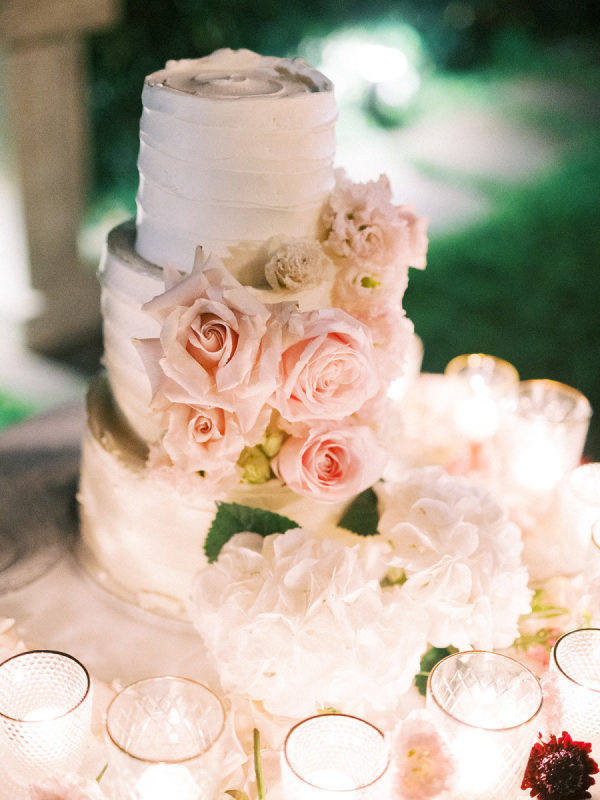 [field title=”Wedding Cake”]Delicate pink lisianthus and sweet avalanche roses adorned a three-tiered cake with chantilly cream and fresh berries.[/field]