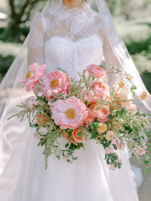 My bou had peonies – my favorite flower – and other layered flowers, like garden roses, to help achieve the romantic aesthetic we were going for.