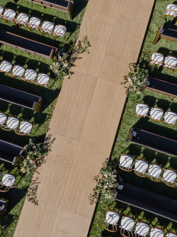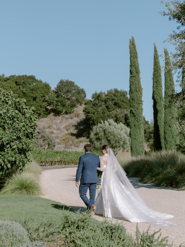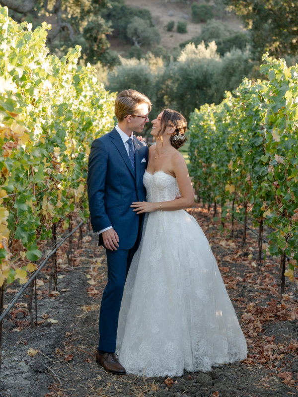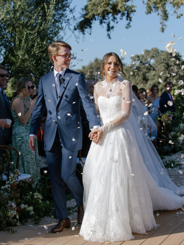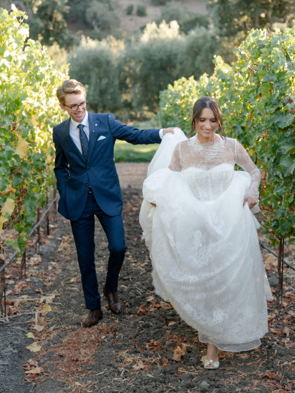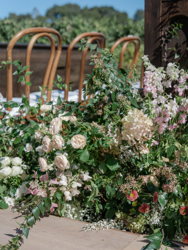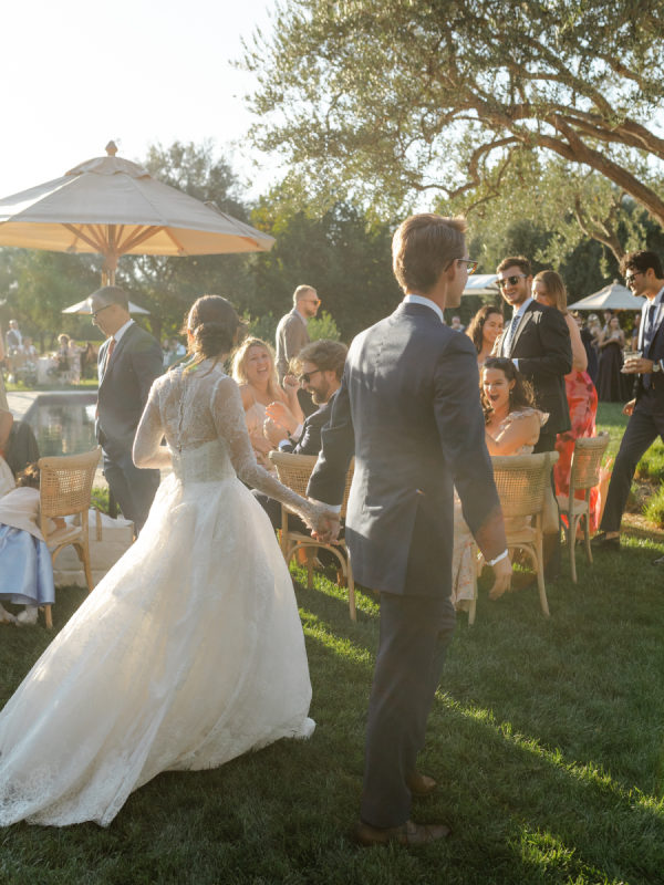 For our ceremony, we knew from the start that we wanted to exchange vows in front of the vineyards, with the rolling hills as our backdrop—a setting that was very reminiscent of Italy. Our incredible florist, Max Gil, designed florals that complemented the natural beauty of the space, working with the existing oak branches that formed an organic arch.