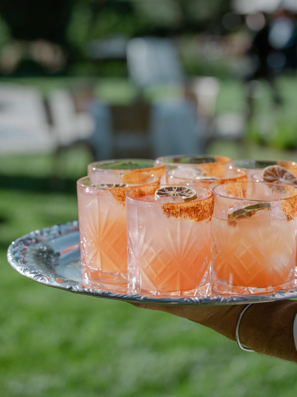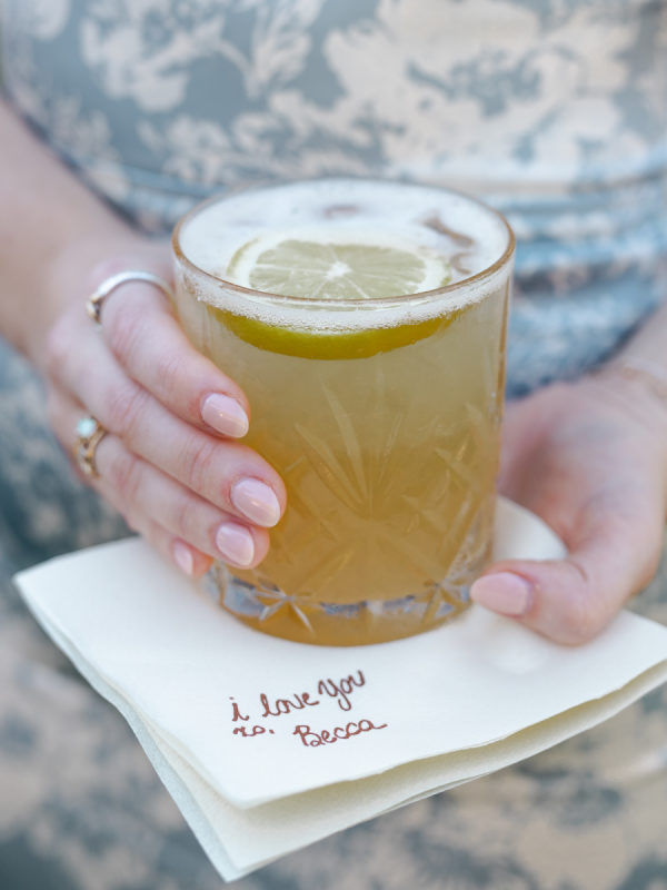 One of Nick’s only requests for our wedding was to serve blueberry steak. This dish was inspired by Acqua Al 2, a neighborhood restaurant he frequented during our study abroad in Florence. For drinks, we created three signature cocktails, each with a name that had personal significance. My cocktail was a replica of my go-to drink from Madison on Park, one of our favorite date night spots in San Diego. We renamed it La Ghibellina after the street where our Florence apartments were located—the very place where Nick and I first met. Nick’s cocktail was named The Ryman, after the historic music venue in Nashville where we had our first official date as a couple when we returned for our senior year of school. Our third cocktail, The Gigi, was a citrusy twist on my grandma’s favorite drink, a margarita, and was named in her honor. We also served beer and kombucha out of a Piaggio truck, which was another really fun nod to Florence! For dessert, we served fruit tarts and madeleine cookies as a nod to the month we spent together in Paris. Since Nick and I are both coffee fanatics, a coffee bar was a must. One of our favorite things to do together is enjoy a for-here mug of coffee at new cafés, so we wanted to bring that experience to our wedding. We served my favorite honey cinnamon latte, Nick’s go-to cortado, and affogatos for a sweet, espresso-filled treat. We carried our love for coffee into the after-party as well, serving espresso martinis to keep the energy high.