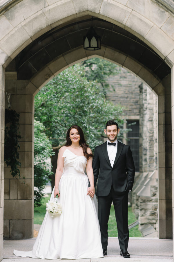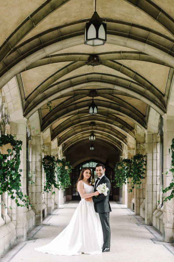 My first dress that I wore during the day and for our photoshoot at Knox College was designed by Enzoani. I loved the modern, yet organic bow detail that added a feminine touch to the dress, making it a memorable first look outfit. nothing beats that feeling of a ball gown on your wedding day. My second dress that I changed into right before walking down the aisle to surprise Liad was designed by Romona Keveza. Saying yes to this dress was an easy decision and one I am so happy with. Walking down the aisle in a Ramona Keveza dress was a dream. It complemented the classic European garden feel of the wedding and will stand the test of time for years to come.