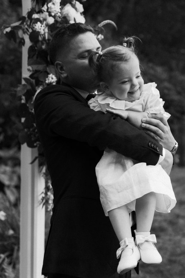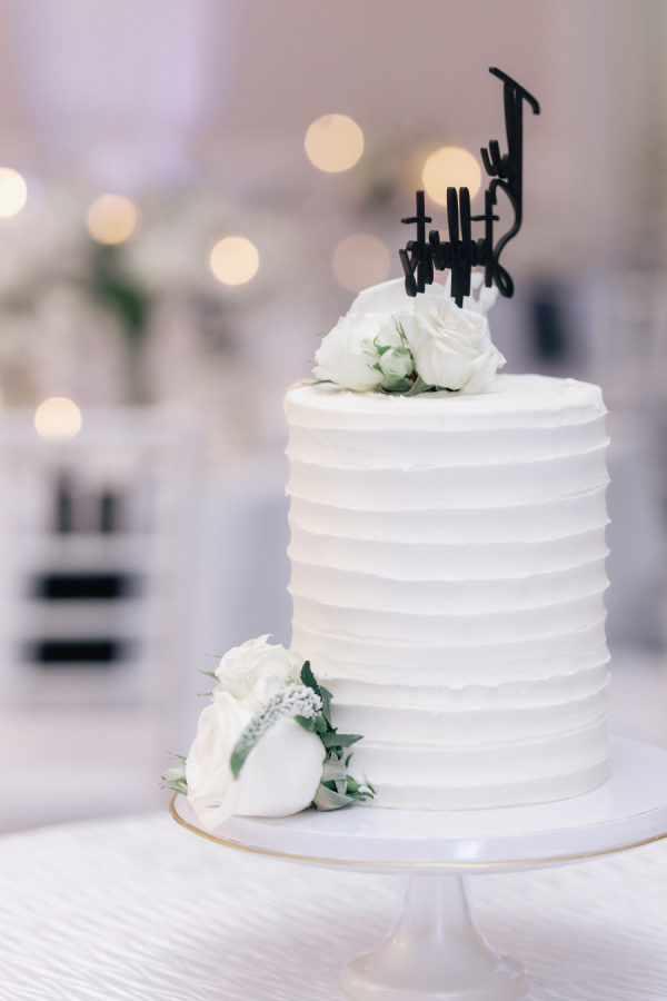 [field title=”Wedding Cake”]Mia and Jeff opted for a simple, single tier vanilla cake by Cake Monstah. It was decorated with white roses and a topper reflecting their married name, The Stoddard’s.[/field]