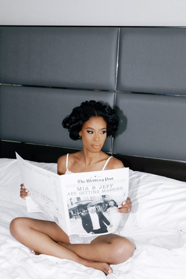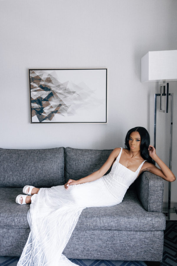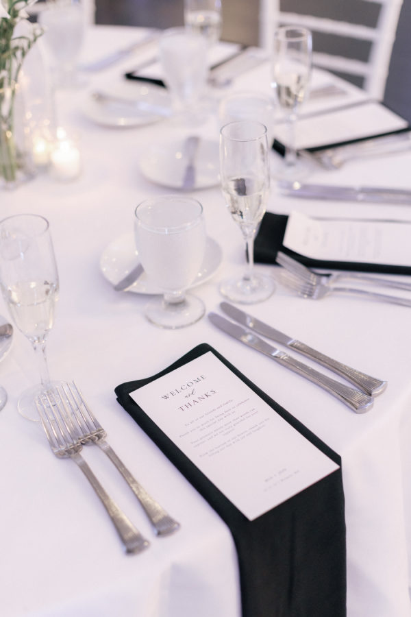 [field title=”Wedding Colors”]The anchor colors of Mia and Jeff’s wedding were white and black. The couple purposefully chose an elegant and timeless palette that would complement and be cohesive with the aesthetic of their venue, Avenir.[/field]