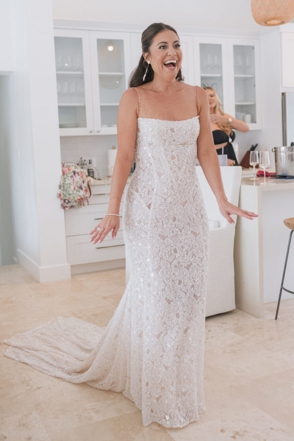 [field title=”Wedding Gown”]Sexy and Tropical. I chose my gown specifically because it had very small details that reminded me of the ocean, bubbles and netting. Very subtle and unintentional but the perfect combination of glamourous and appropriate for a beach wedding. [/field]