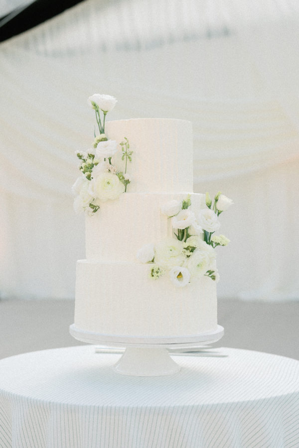 The cake was clean and timeless, featuring simple white tiers accented with soft, organic white florals. Understated and elegant, it fit seamlessly into the day’s minimalist design.
