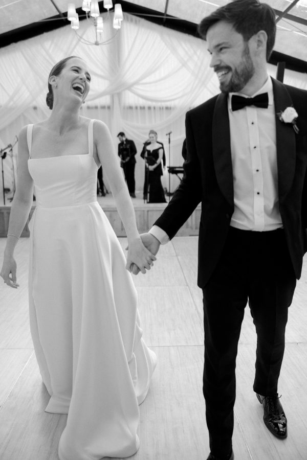 The bride, a minimalist at heart, wanted the day to feel authentic to who she is. She wore a clean-lined gown by Chosen by KYHA, perfectly reflecting her refined, understated style.