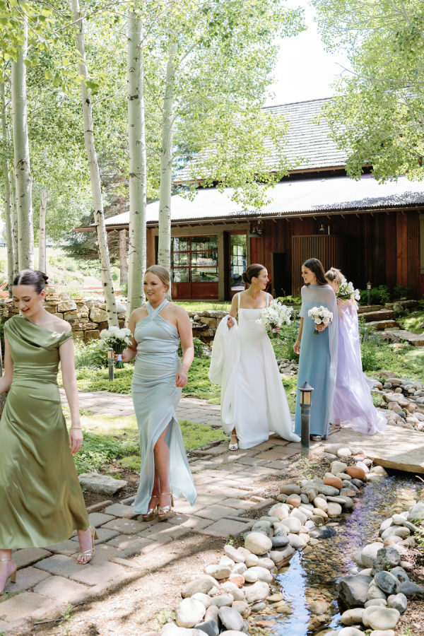 [field title=”Bridesmaid Dresses”]The bridesmaids were given a color palette and the freedom to make it their own. Each chose a dress from a different place, with personal choice and individuality at the heart of the look.[/field]