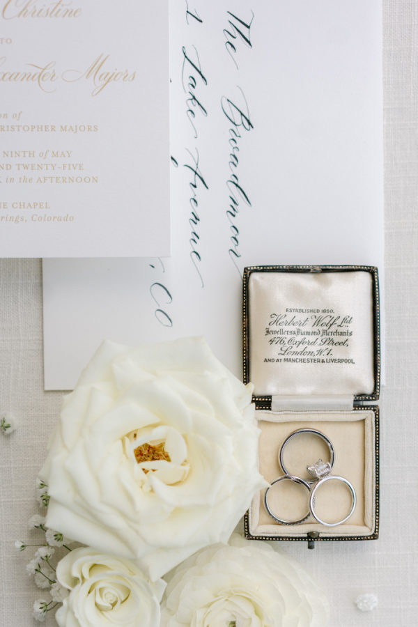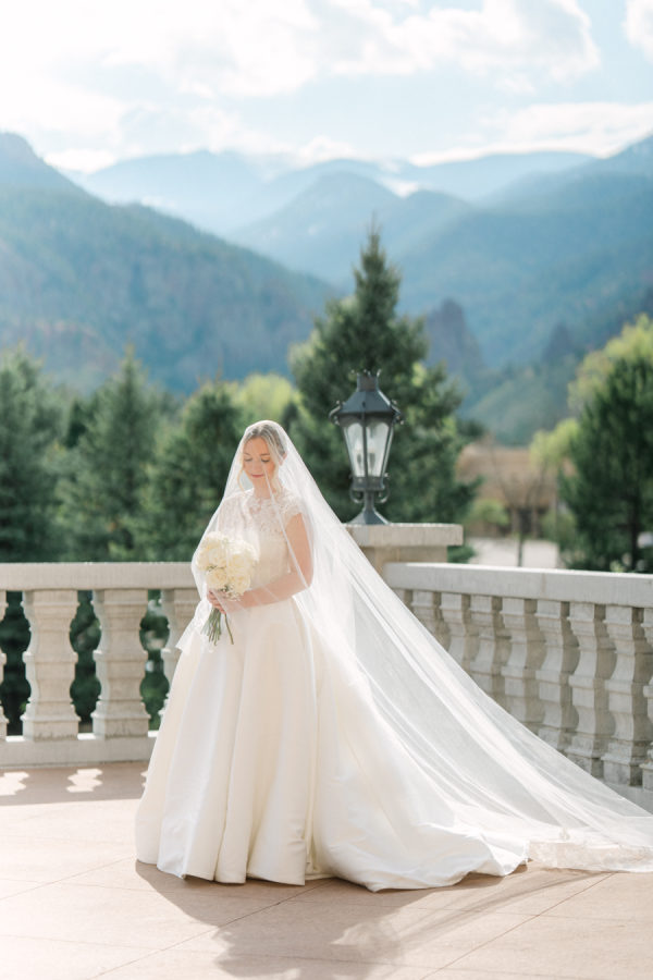 [field title=”Special Detail #1″]Eleanor was set on having portraits with stunning mountain views, so her planner thoughtfully reserved the Parker Suite, complete with a private terrace over the porte-cochère. There, Eleanor and Sam looked every bit like royalty against the breathtaking Colorado landscape.[/field]