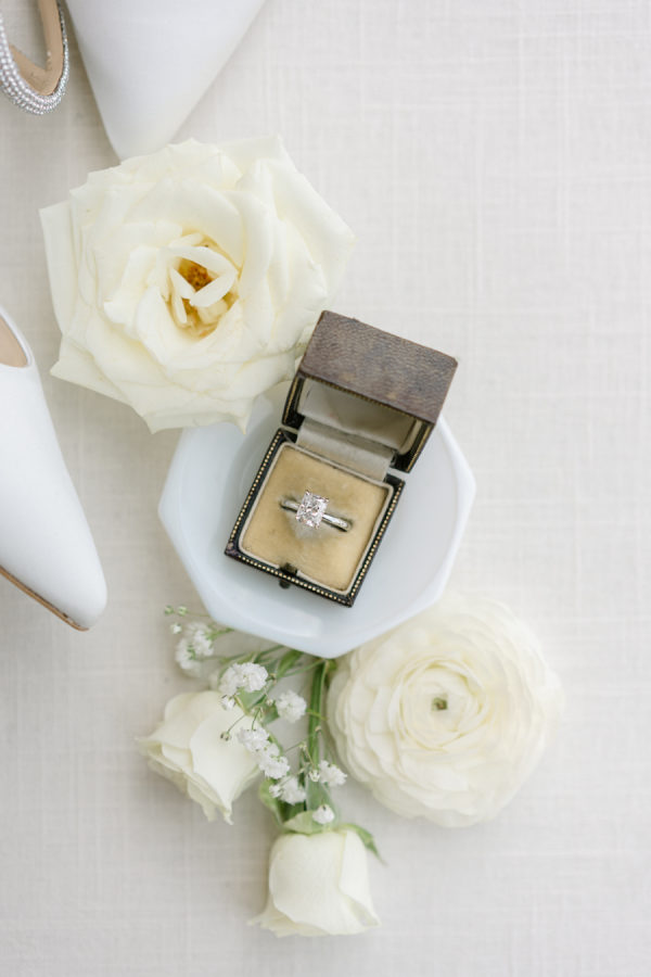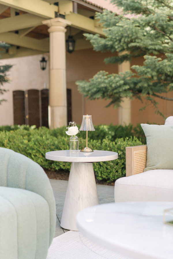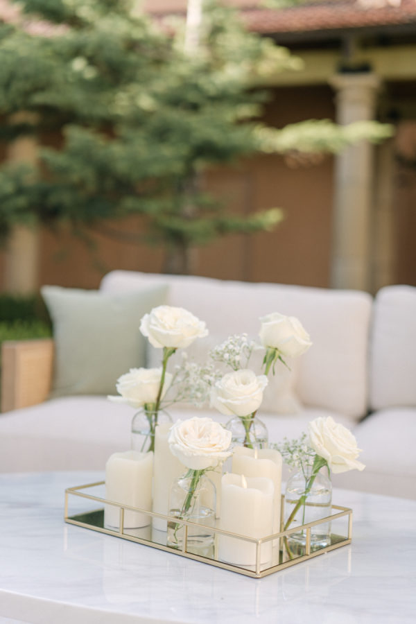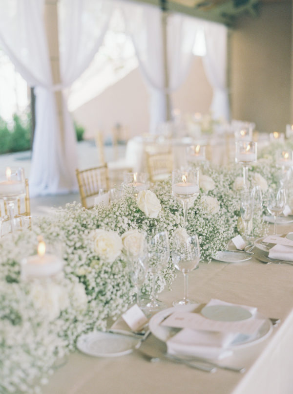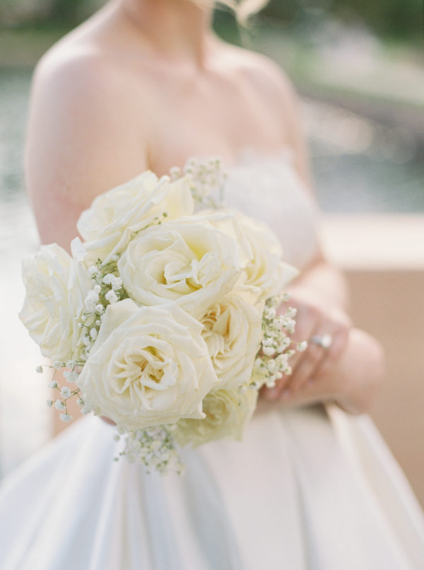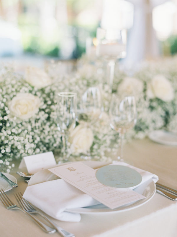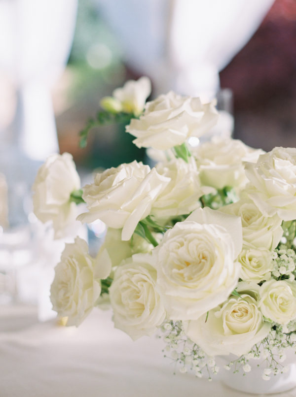 The floral design by Elizabeth Rose Florals was intentionally simple and timeless, centered around white roses and delicate sprigs of baby’s breath. The soft, monochromatic palette created a light and airy feel that beautifully complemented the mountain setting and classic attire. From the chapel to the custom lounge and reception tables, every detail felt thoughtfully cohesive and effortlessly elegant.