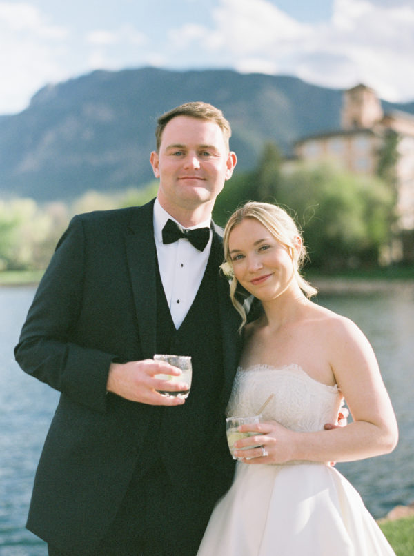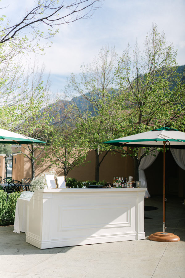 [field title=”Food & Drink”]The Broadmoor catered the evening with a beautifully curated menu and exceptional service, offering guests a true taste of Colorado luxury. Adding a personal touch, planner Jillian surprised the couple with a custom-designed bar, creating a stylish focal point for drinks and conversation during the cocktail hour.[/field]