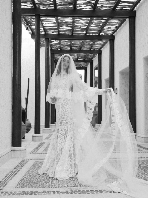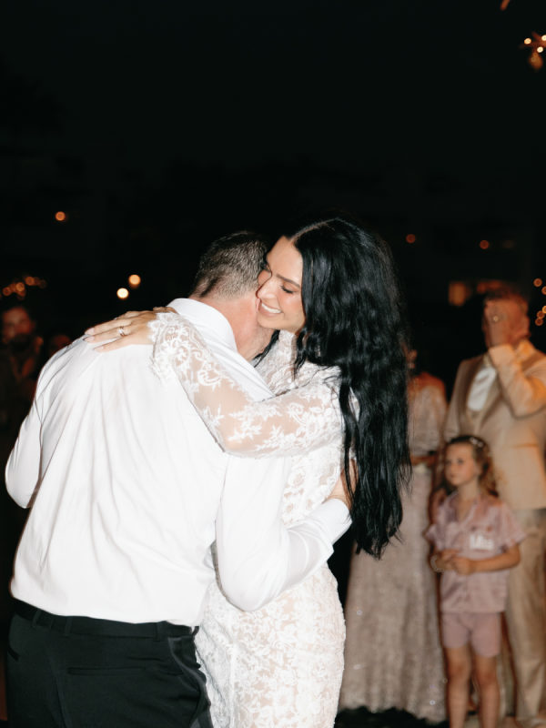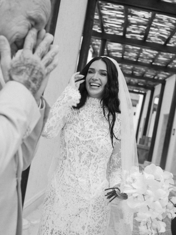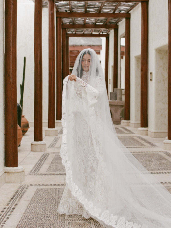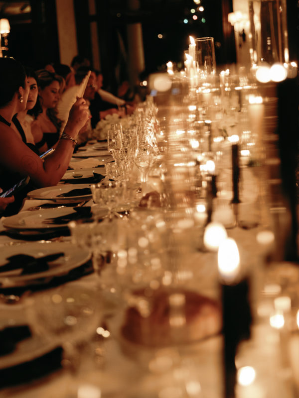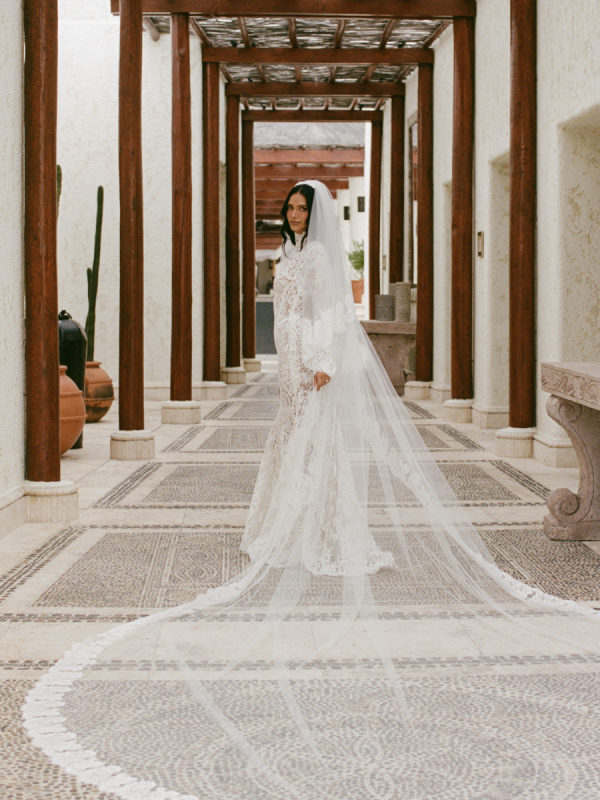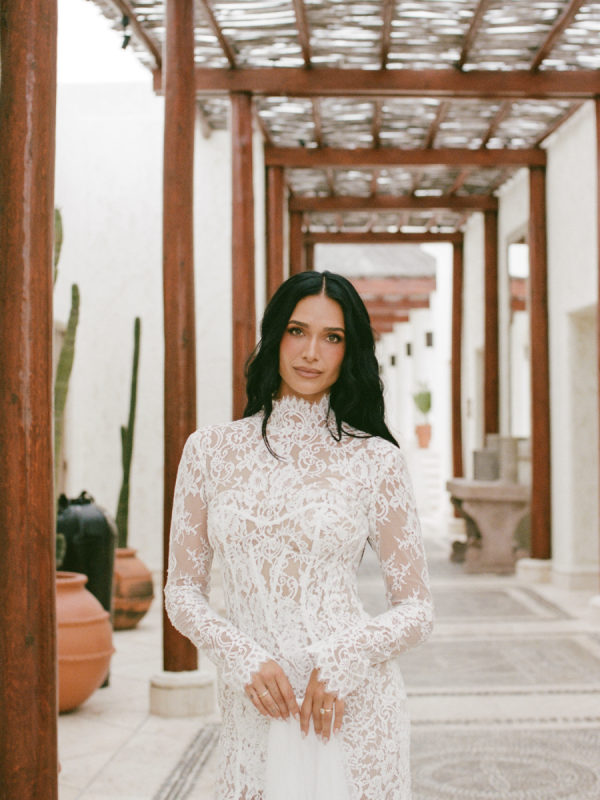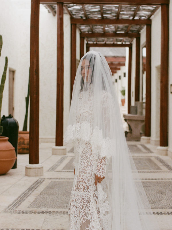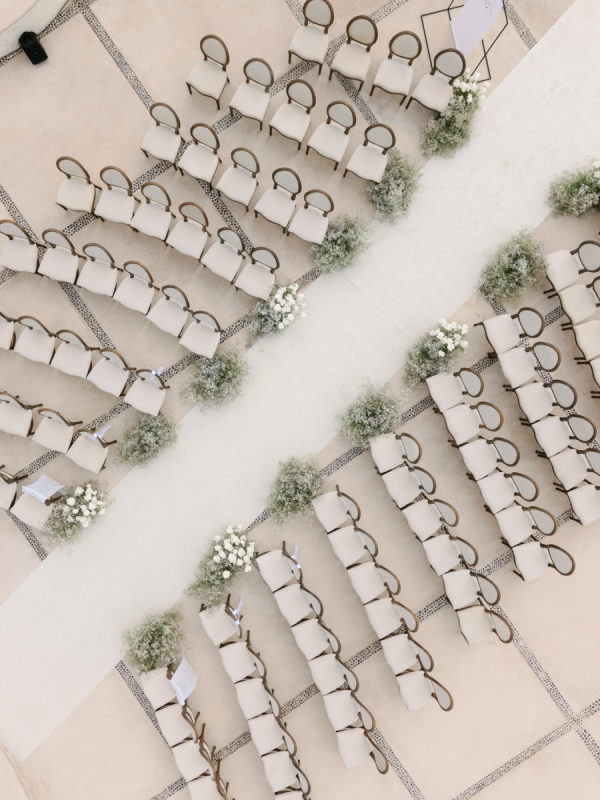 Robin and April love a clean, ethereal, and highly sophisticated aesthetic…so we presented a beautiful and bold event that reflected them as a couple and enhanced the beauty of the resort. Our bride’s love for black inspired a romantic contrast against the soft sand, creating a striking yin-yang harmony. Honeycomb Affair executed flawlessly the ethereal clouds of baby’s breath with delicate roses — one of her favorite flowers — to keep the look airy, clean, and intentional. The result: a bold yet dreamy setting where elegance meets edge, and softness dances with strength. We wanted to create with Honeycomb Affair and Cabo Linens things and more, gorgeous tables with endless depth of candles, flowy textiles, and our bride’s love for bows, topped off by our beautiful menu designed by Laura Elizabeth Patrick. Our day-of signage, created by Luxe and Linen, was crafted from beautiful marble, grounding the design with a sense of permanence and natural elegance. The stone’s timeless quality anchored the ethereal elements, creating a refined balance between softness and strength.