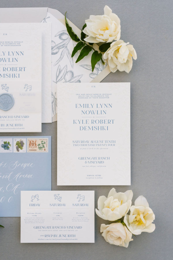 Emily and Kyle’s special day was inspired by timeless, classic design influenced by the coast, late summer, and the lush grounds of Greengate Ranch and Vineyard. It was filled with that effortless elegance of California chic.