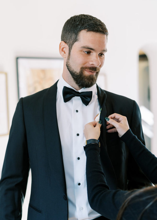 The bride got ready in the Hal Thompson Suite at the Commodore Perry Estate, a distinctive space featuring bold Texas cacti wallpaper that added a playful, modern twist to the otherwise classic surroundings. The whimsical cactus design was a nod to the bride’s roots and the couple’s adventurous spirit.