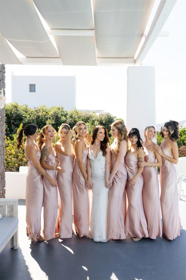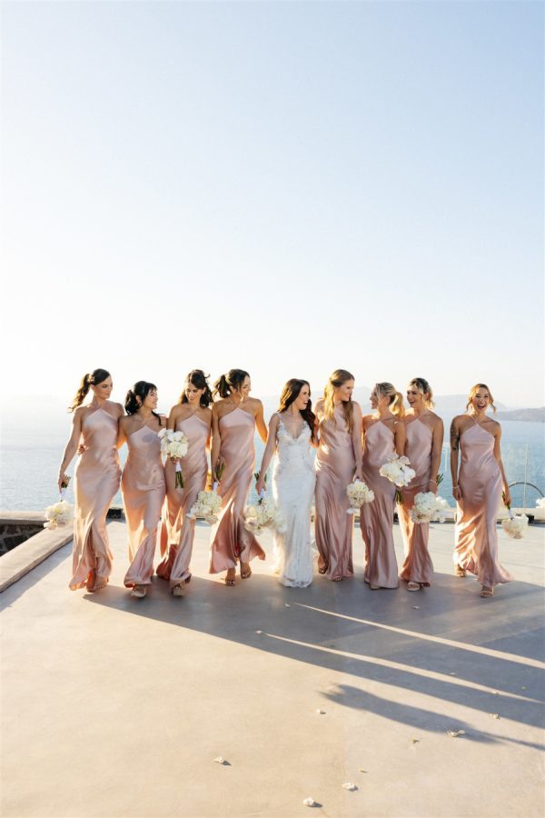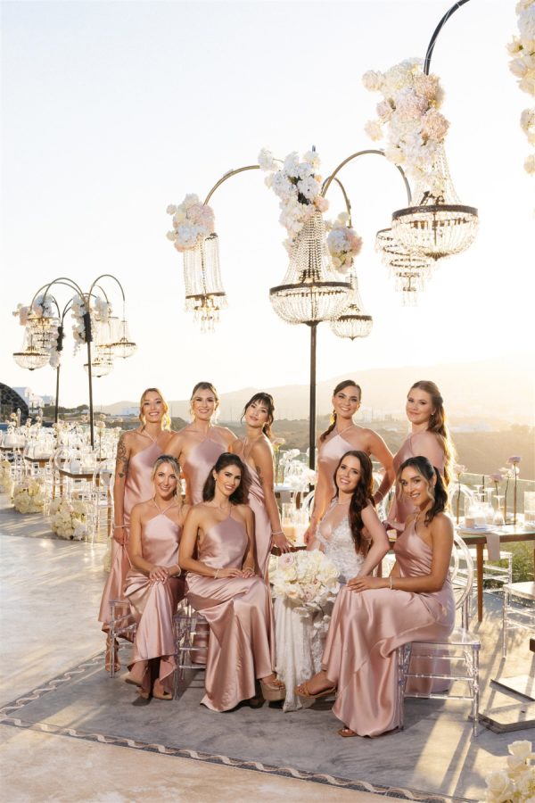 [field title=”Bridesmaid Dresses”]The bridesmaids looked like they had stepped straight off the pages of a high-fashion magazine, each one exuding elegance and modern glamour in their soft pink dresses. The gowns were impeccably tailored, designed to flatter each bridesmaid while maintaining a cohesive, runway-worthy aesthetic.[/field]