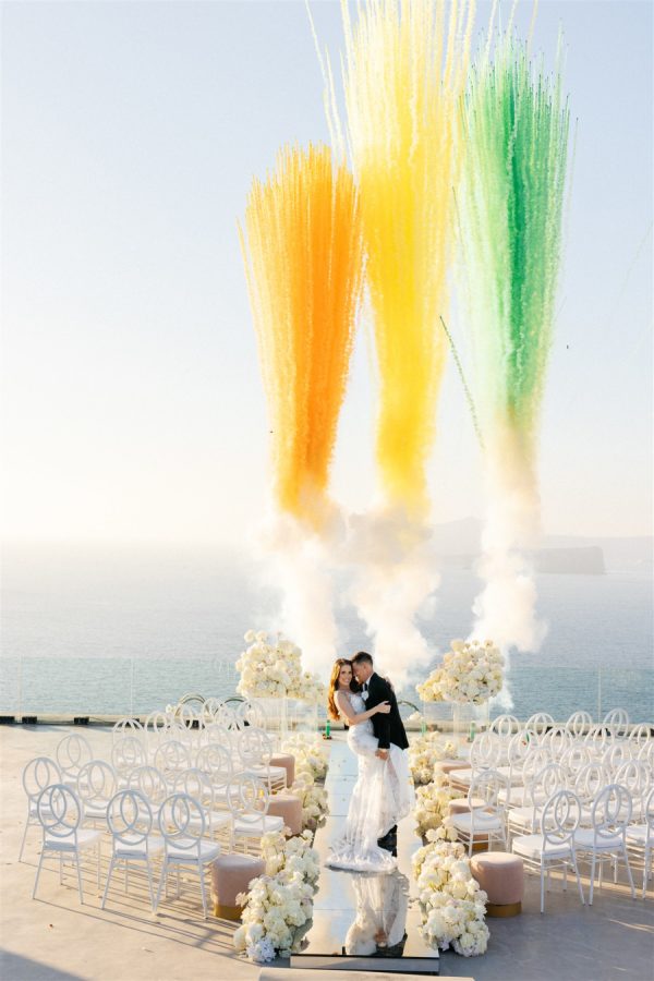[field title=”Special Detail #1″]The first kiss as a married couple was marked by colored smoke bombs, creating a dramatic and vibrant photo moment that captured their joy and passion. [/field]