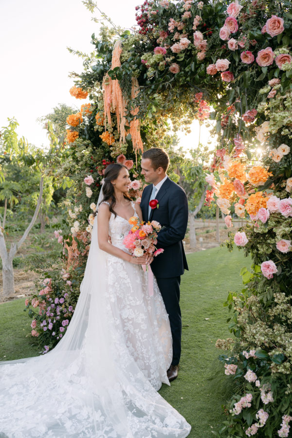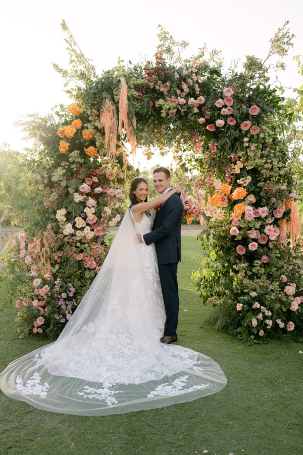 The celebration embraced a garden-inspired aesthetic, blending effortless elegance with a relaxed, welcoming atmosphere. The ceremony featured a lush floral archway layered with rich textures and warm tones, while the reception space was styled with soft linens, delicate place settings, and organic arrangements that felt as though they belonged naturally in the landscape. Above all, the couple’s vision centered on sharing the beauty of Cabo — a place deeply tied to their journey — with the people they love most.