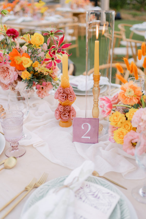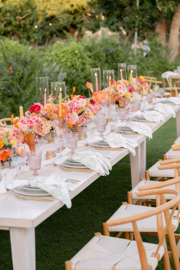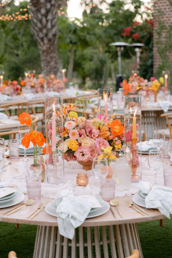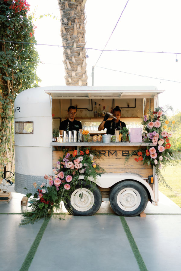 The menu spotlighted local flavors, including a playful late-night surprise of Flora Farms’ signature pizza — a nod to the couple’s love for the venue. Signature cocktails flowed throughout the evening, with the spicy mezcal paloma quickly becoming a guest favorite.