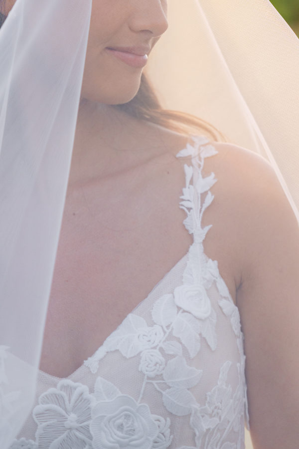 [field title=”Wedding Gown”]Gabrielle chose a Monique Lhuillier gown adorned with intricate lace and 3D floral appliqué — a fresh-off-the-runway design from Bridal Fashion Week. She was the first bride to order the gown, drawn to its modern, floral-forward elegance that perfectly echoed the design of the day.[/field]