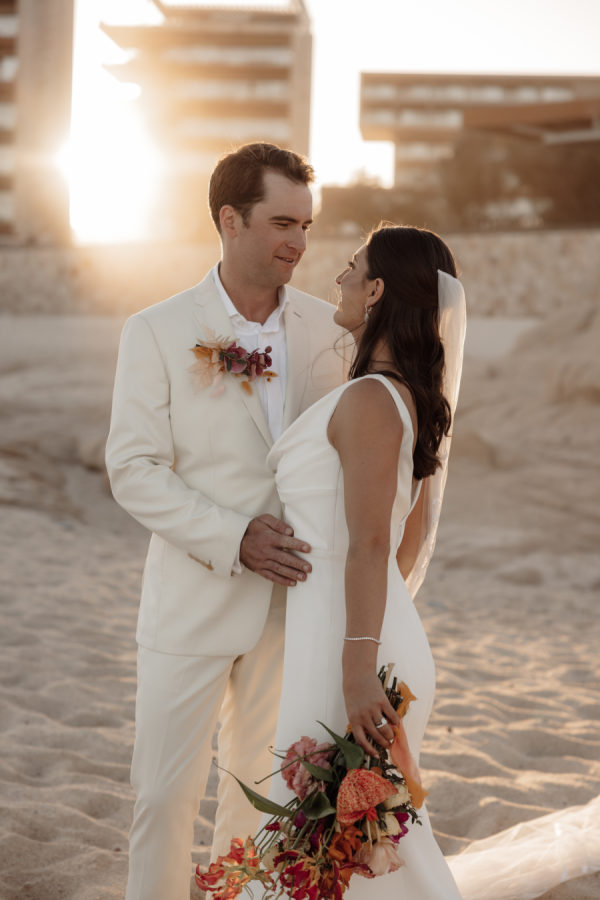 For this incredible wedding, we drew inspiration from the breathtaking sunset hues of Baja, creating a bold and dynamic design with color blocking. We blended vibrant shades of orange, pink, yellow, and peach to evoke the essence of the sunset.