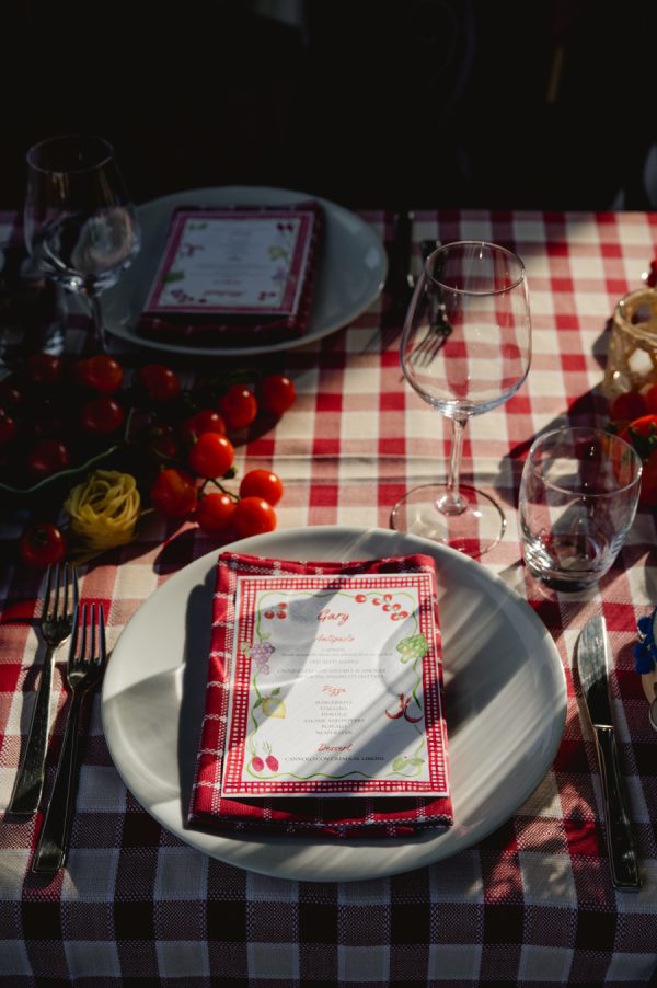 [field title=”Food & Drink”]Watercolor menus showed guests the variety of classic Italian dishes throughout the weekend, from six pizza varieties to specialty pasta to lemon cannolis. [/field]