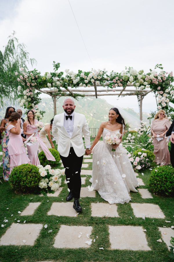 Inspired by the natural beauty of the Amalfi Coast, Ericka and Gary envisioned their wedding weekend as an intimate, dreamlike celebration — like a spring evening in Italy with no curfew. Ericka embraced her love of pink and leaned fully into every magical notion throughout the planning process. The floral design followed a romantic, blush-toned palette to complement the breathtaking views of Ravello, framed by an altar of roses and branches.