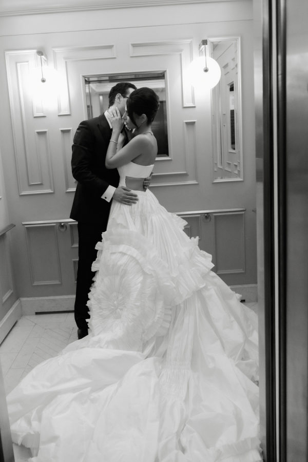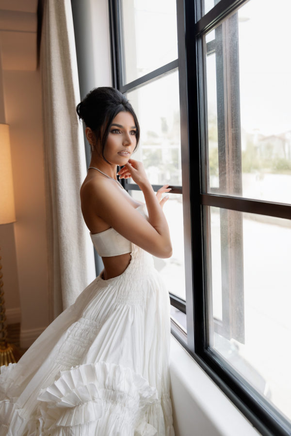 For months, I visited every bridal boutique in Los Angeles and still couldn’t fall in love with anything. As someone who’s worked in fashion my entire life, the dress meant everything to me. Most dresses looked like something I’d already worn, just in white, or had lost their magic after saturating Instagram. I didn’t know exactly what I wanted, but I knew with certainty what I didn’t. Vera Wang was my last stop. Deep down, I always knew the dress would be there, but I still wanted to shop like an anti-bride and be sure before my heart landed on Vera. I arrived with pre-selected gowns, but again, nothing clicked. Then I noticed one dress was missing from my selections. When I asked about it, the representative said it was rarely chosen and very different. That only made me want to try it more. The second I put it on, I felt the emotion I’d been chasing all along. It was bold, avant-garde, and had the wow factor I always look for when putting an outfit together. Still, I hesitated. It was unlike any wedding dress I’d seen, and I wasn’t sure if I could push the envelope that far. At my follow-up appointment, I tried on a new round of dresses, but nothing came close. When I stepped into the dress again, my sales rep encouraged me to walk to the front of the boutique, where sunlight shone through floor-to-ceiling windows. People passing by began to stop, applaud, and even blow kisses. Inside, a woman watching nearby began complimenting how the dress looked on me. I assumed she was another shopper until my rep introduced her as Erica Arkin, Senior Vice President of Vera Wang. She and the New York team had just flown in for the awards show and were waiting in the store for their hotel rooms to be ready. Moments later, another stylish woman walked in, saying she had to see what was causing all the commotion outside. My representative introduced her as Priya Shukla, Senior Vice President of Global Marketing for Vera Wang. She immediately began gushing over the dress and how well I wore it. She loved it so much, she said she wanted to take a photo and send it to Vera herself. I was overwhelmed at the idea that Vera Wang might even know I exist, which was surreal. I asked Priya if I could have a screenshot to remember the moment, but she kindly suggested calling Vera instead. So there I was, standing in a Vera Wang gown, beside her right-hand team, patiently waiting as the phone rang to speak to Vera Wang herself. Vera complimented how the dress looked on me and said she was thrilled I was leaning toward it. Being able to express what a visionary and icon she is is a moment I’ll never forget. It was the confirmation I needed that the dress was truly meant for me. Having my mom and sister there to witness it made it all the more unforgettable. After the call, my representative turned to me and said she had never seen anything like it in all her years of bridal appointments. By pure chance, the Vera Wang team’s hotel rooms weren’t ready, and they happened to come into the boutique during my appointment. The timing was completely unplanned but absolutely perfect.