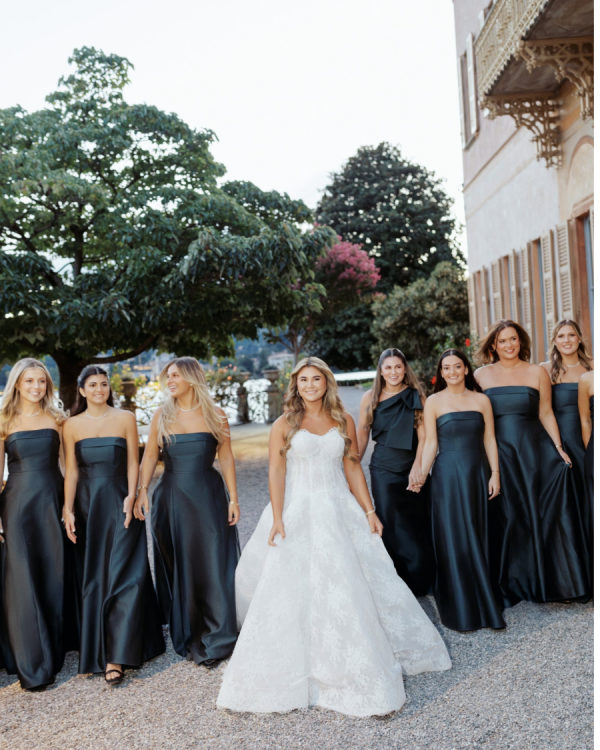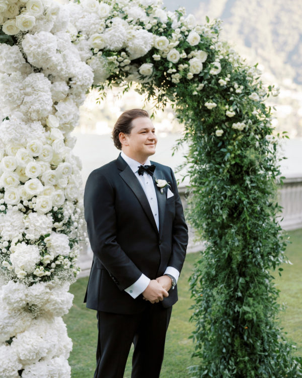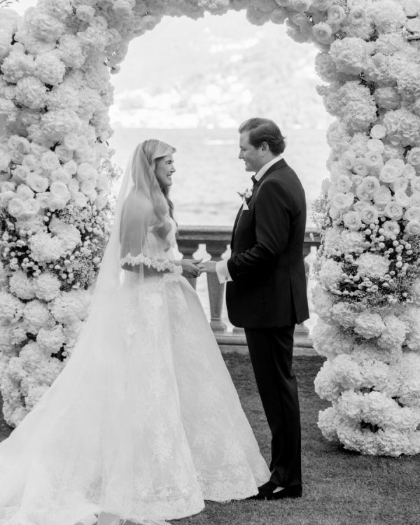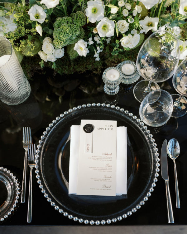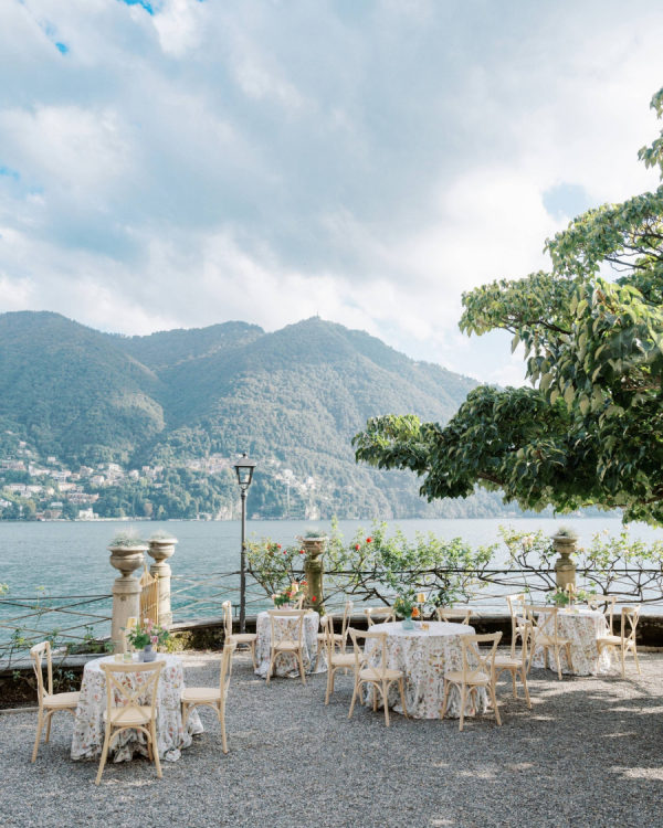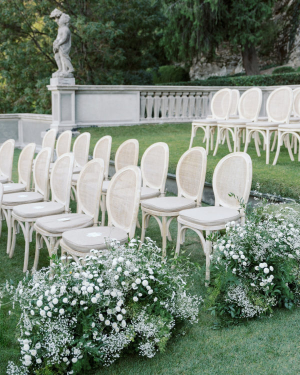 [field title=”Wedding Colors”]We chose a classic, elegant, and timeless color palette for our wedding, aiming for a look that felt natural and effortless as if it had always belonged. For the flowers, we went with white and green, creating a fresh and sophisticated feel. To complement this, we added black and silver accents to the tables, plates, chairs, and décor, adding a touch of refinement without overpowering the simplicity. The colors flowed seamlessly with the stunning backdrop of Lake Como, enhancing the natural beauty of the surroundings while creating an atmosphere of understated elegance.