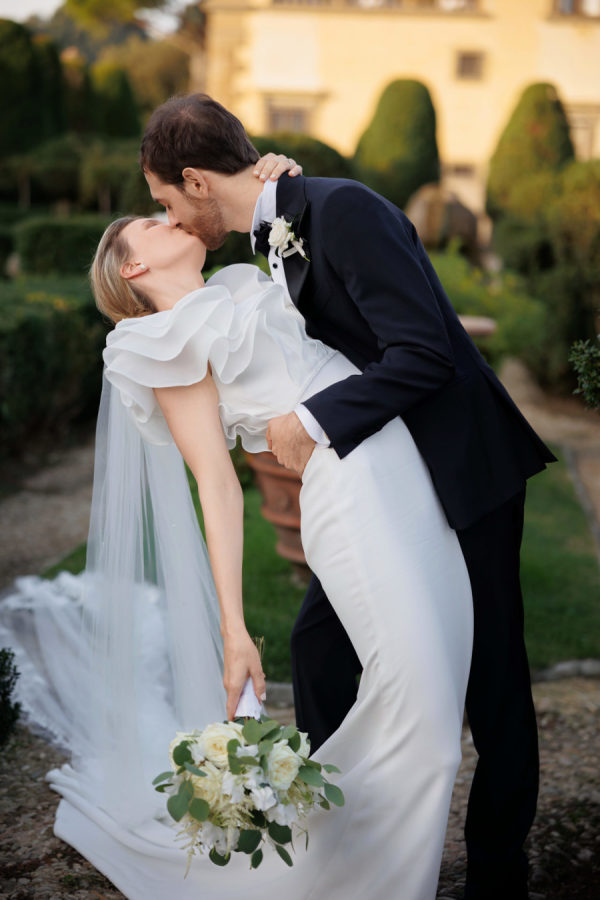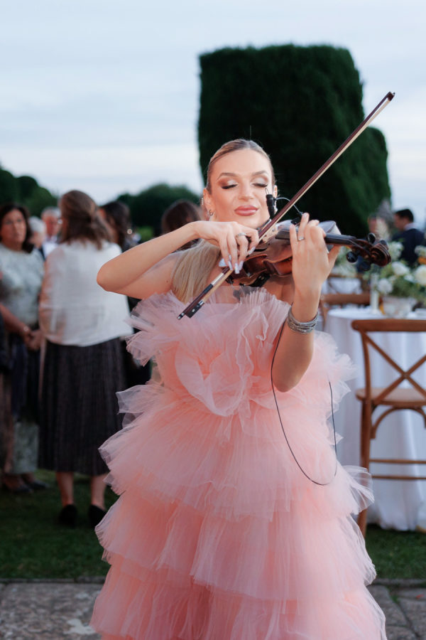 The day began with a moving Greek Orthodox ceremony in the heart of Florence, where traditional liturgical music set a deeply spiritual and timeless tone. Later, at Villa Gamberaia, guests were treated to an exquisite dining experience, beginning with an outdoor cocktail hour accompanied by a violinist in soft pink tulle. The reception was filled with heartfelt moments, including five emotional speeches from family and friends that brought both tears and laughter to the evening. The newlyweds shared their first dance to the timeless classic “Can’t Help Falling in Love” by Elvis Presley, a romantic highlight that set the mood for the celebration. The live band kept the energy high throughout the night with incredible performances, blending international hits with soulful vocals and instrumental flair. The combination of elegant ceremony music, touching speeches, and an unforgettable party atmosphere made the wedding as emotional as it was vibrant.