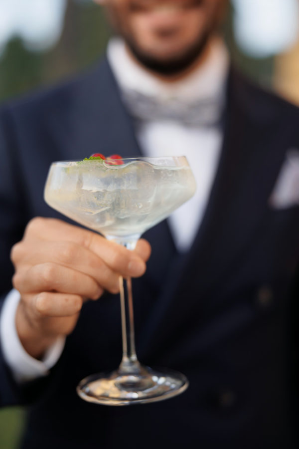 The culinary experience was a true celebration of Italian excellence, thoughtfully curated to reflect the elegance of the setting. Guests were welcomed to a lavish cocktail hour in the gardens of Villa Gamberaia, where signature drinks such as Negroni, Americano, Mojito, and Moscow Mule were served alongside gourmet canapés. Dinner unfolded inside the marquee with a refined menu that highlighted seasonal Tuscan flavors. The first course included delicate vegetable flans and baked eggplant timbales, paired with light, fresh salads. For the main course, guests enjoyed saffron risotto with asparagus and tomato confit, followed by a second course featuring seabass with Mediterranean herbs and seasonal vegetables. The sweet finale was a stunning multi-tiered wedding cake adorned with hand-crafted sugar lemons and white florals, paired with a rich chocolate soufflé and traditional Italian pastries. Wines from prestigious Tuscan estates — including Brunello di Montalcino and Chianti Classico — perfectly accompanied the courses. Every dish was not only a delight for the palate but also a reflection of the couple’s vision: a luxurious yet authentic Italian dining experience, infused with elegance and conviviality.